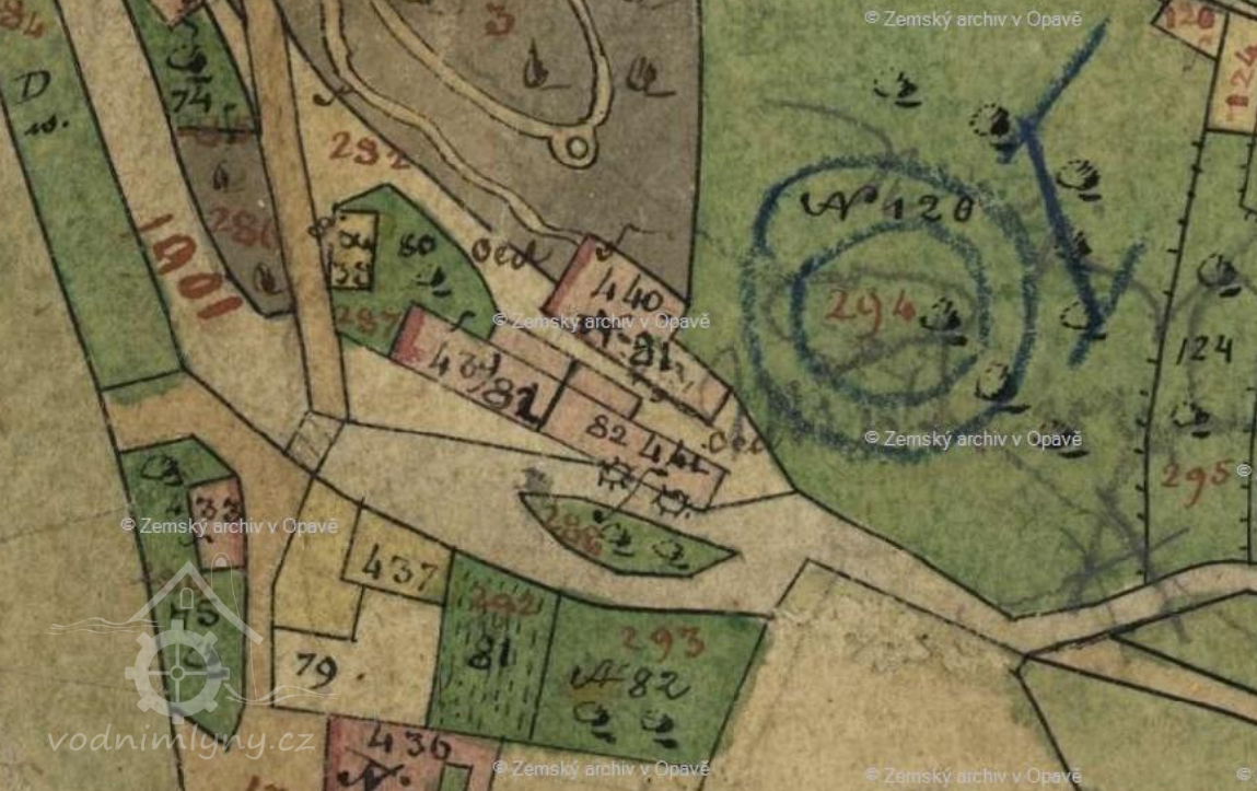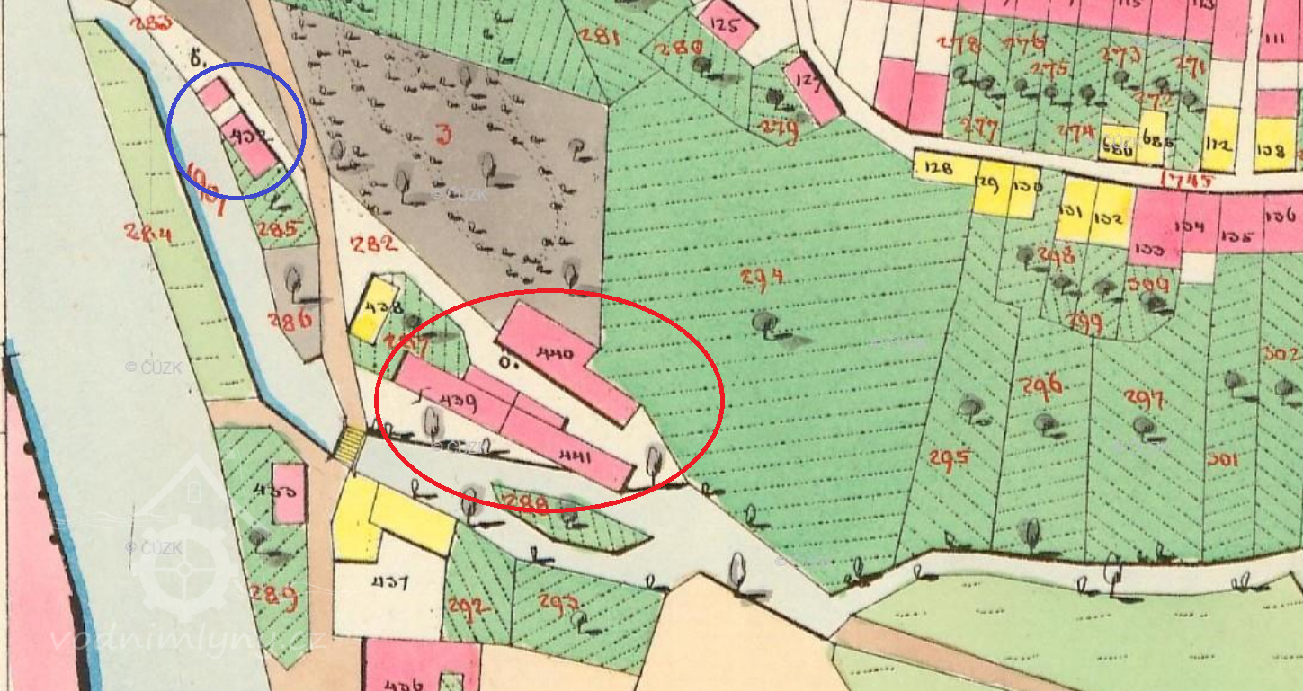 Větší z mlýnů byl zřejmě panský v Zámecké obci. Ten byl vyobrazen i na vedutě města z roku 1695.