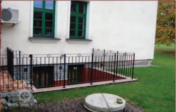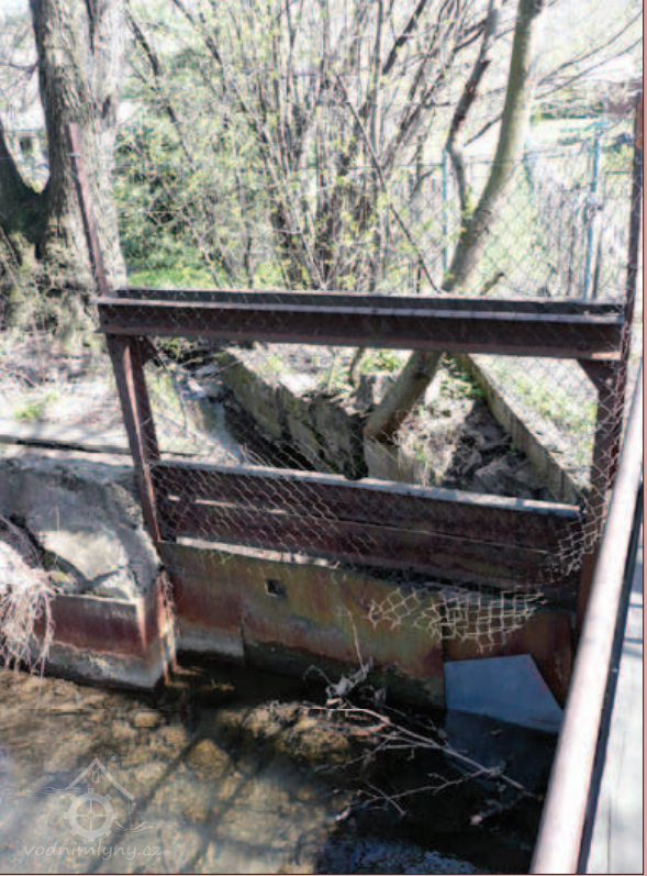 PopisMísto dřevěného kola zřízeno kolo železné na vrchní vodu k pohonu obráběcích strojů mechanické dílny