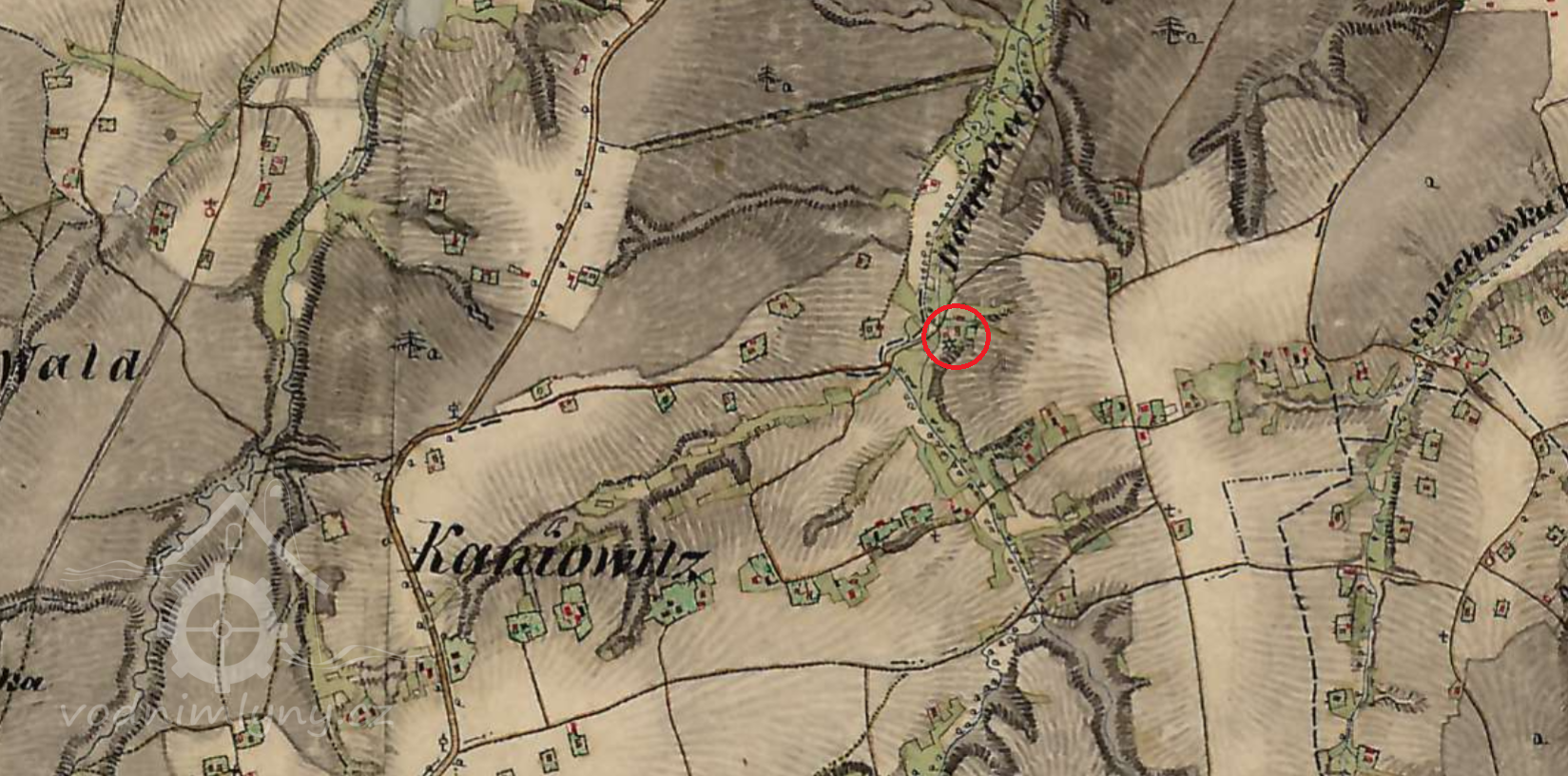 V listině z 30. 10. 1708 frýdecký pán František hr. Pražma z Bílkova potvrzuje kup mlýna na mouku s jedním kolem Řehořovi, poddanému z Kaňovic a potvrzuje listinu z roku 1617, ve které Jan st. Bruntálský z Vrbna prodal mlýnek na mouku Janu Skokanovi.