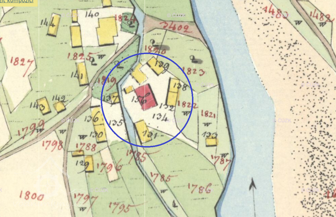 Později byl mlýn přestavěn do podoby velké zděné stavby na parcele č. 139 stojící částečně přístavkem přes náhon.