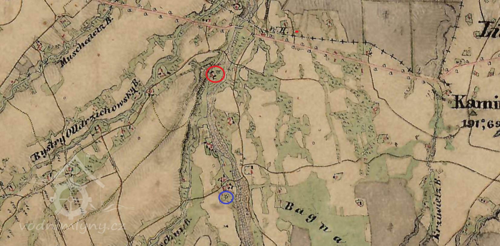 Popis1930: 1 kolo na svrchní vodu, hltnost 0,203 m3/s, spád 3,4 m, výkon 6 HP (4,44 kW)