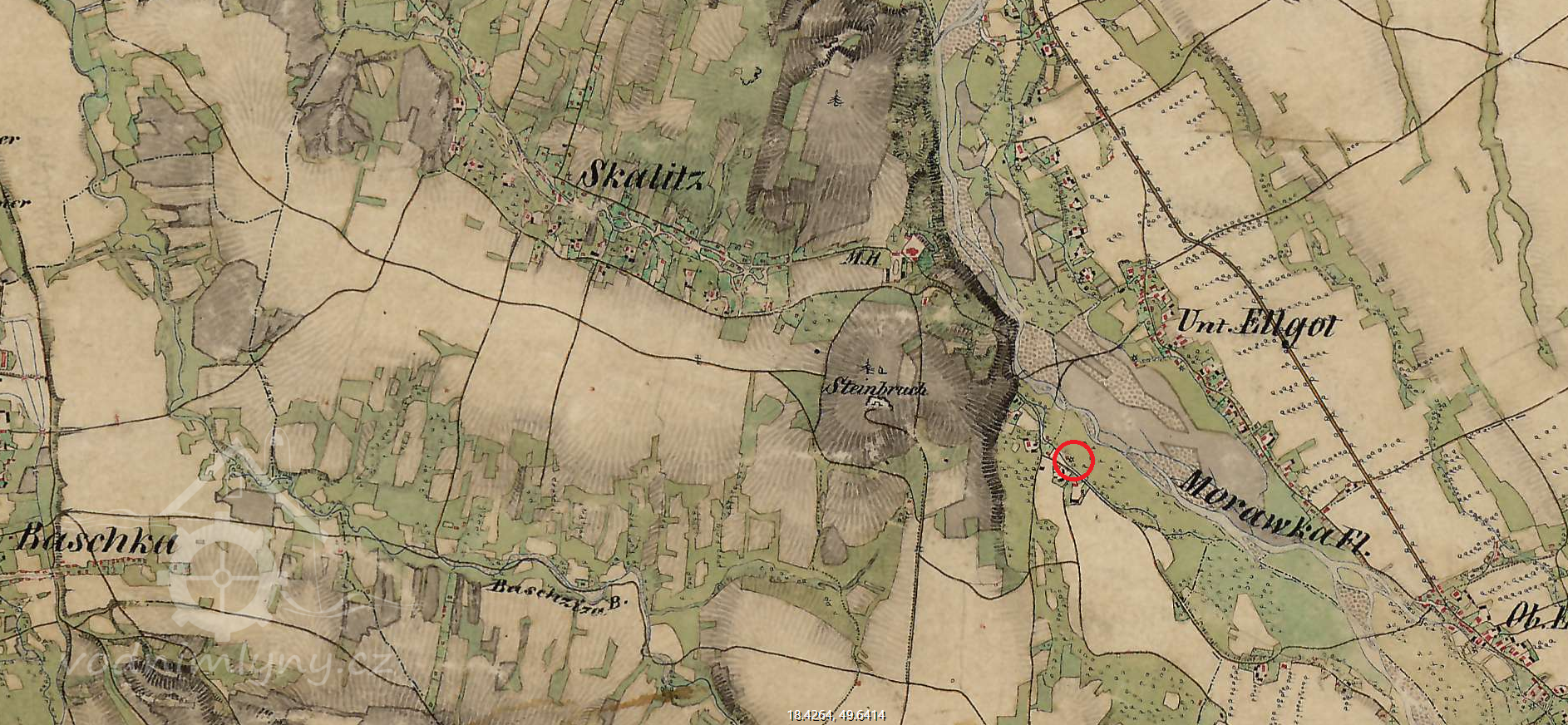 1 km jv od kostela sv. Martina ve Skalici
