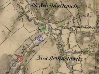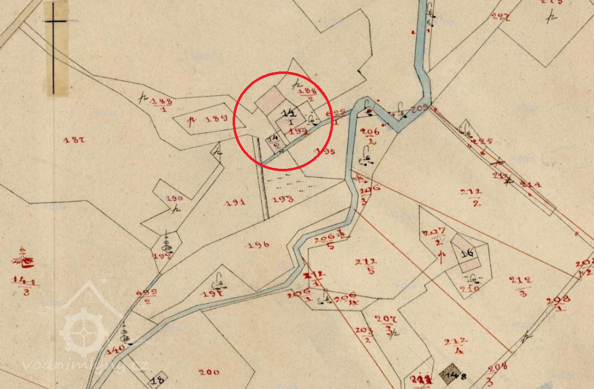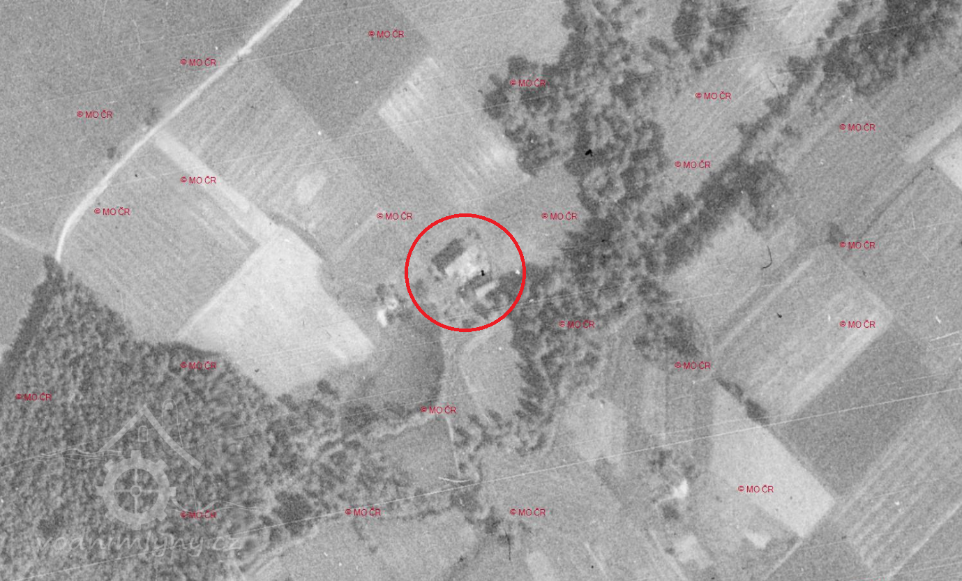Mlýn zrušený v roce 1910, mlýniště zatopeno vodou Žermanické přehrady.