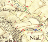1600 Horní Soběšovice měly 19 usedlostí, z toho 6 selských, 9 zahradnických, 1 domkařskou s polnostmi, 1 dědičného mlynáře a 2 řemeslníky.