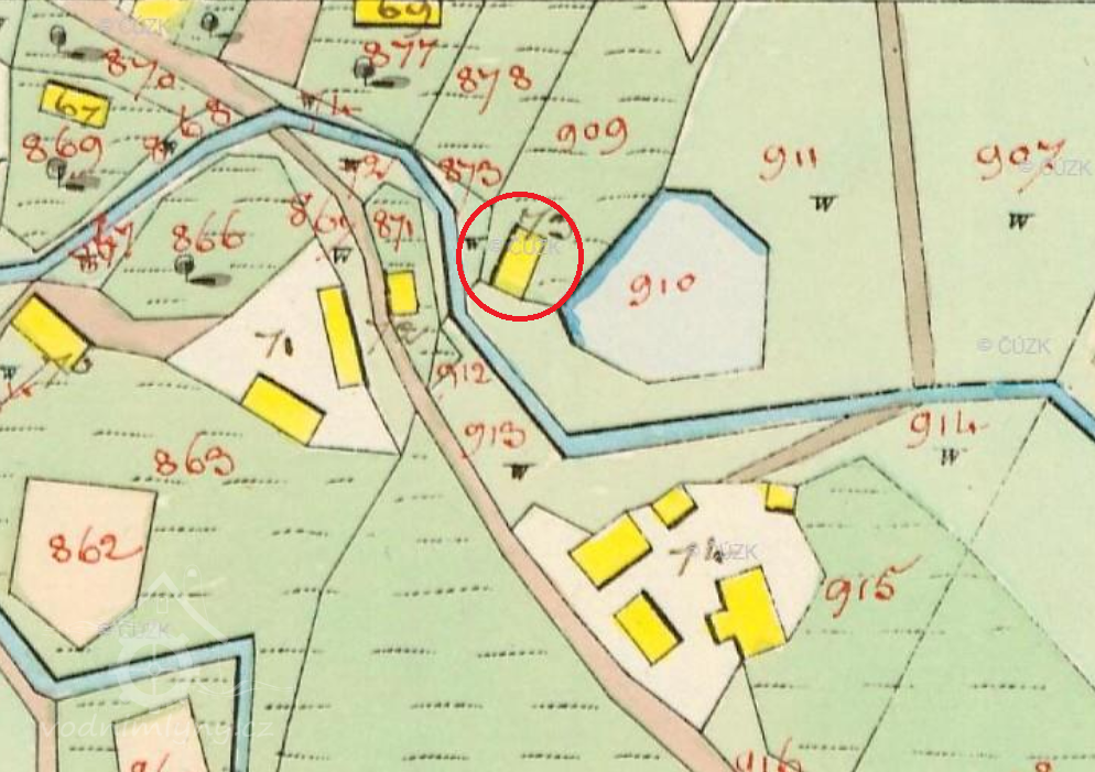 Katastrální mapa evidenční, výřez, 1875, © ags.cuzk.cz/archiv