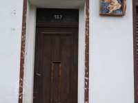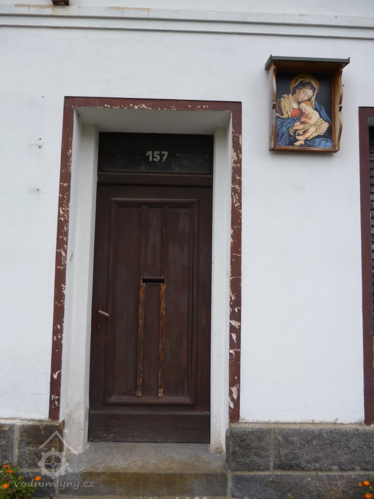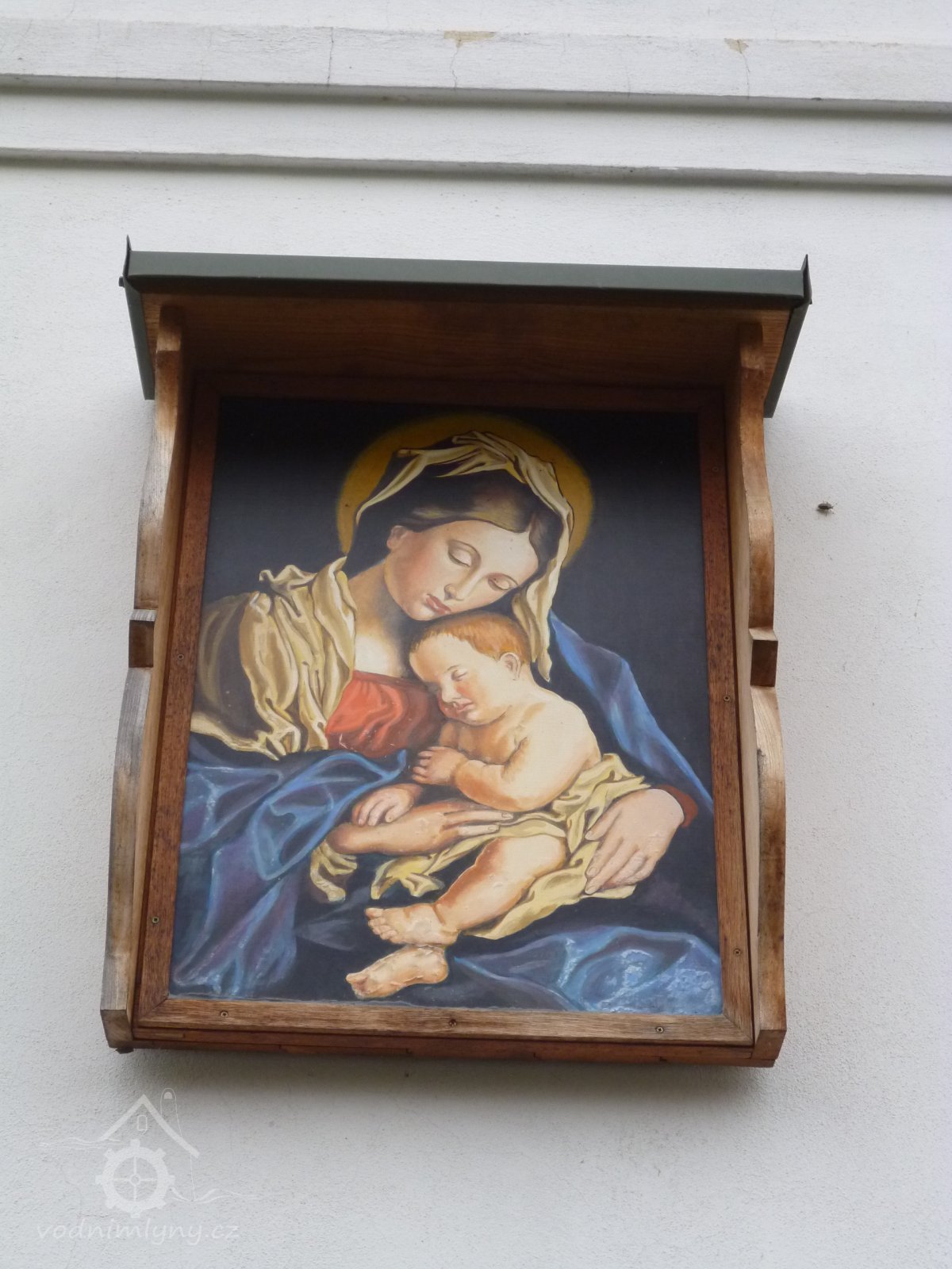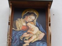 Vstup ze silnice s obrázkem Madony, 2020, © Martina Havelková, (Prvky na obrázku: dveře, umělecké prvky (sochy, malby, reliéfy))