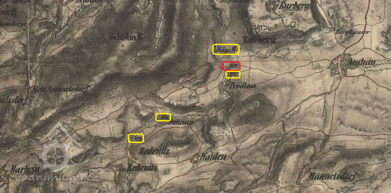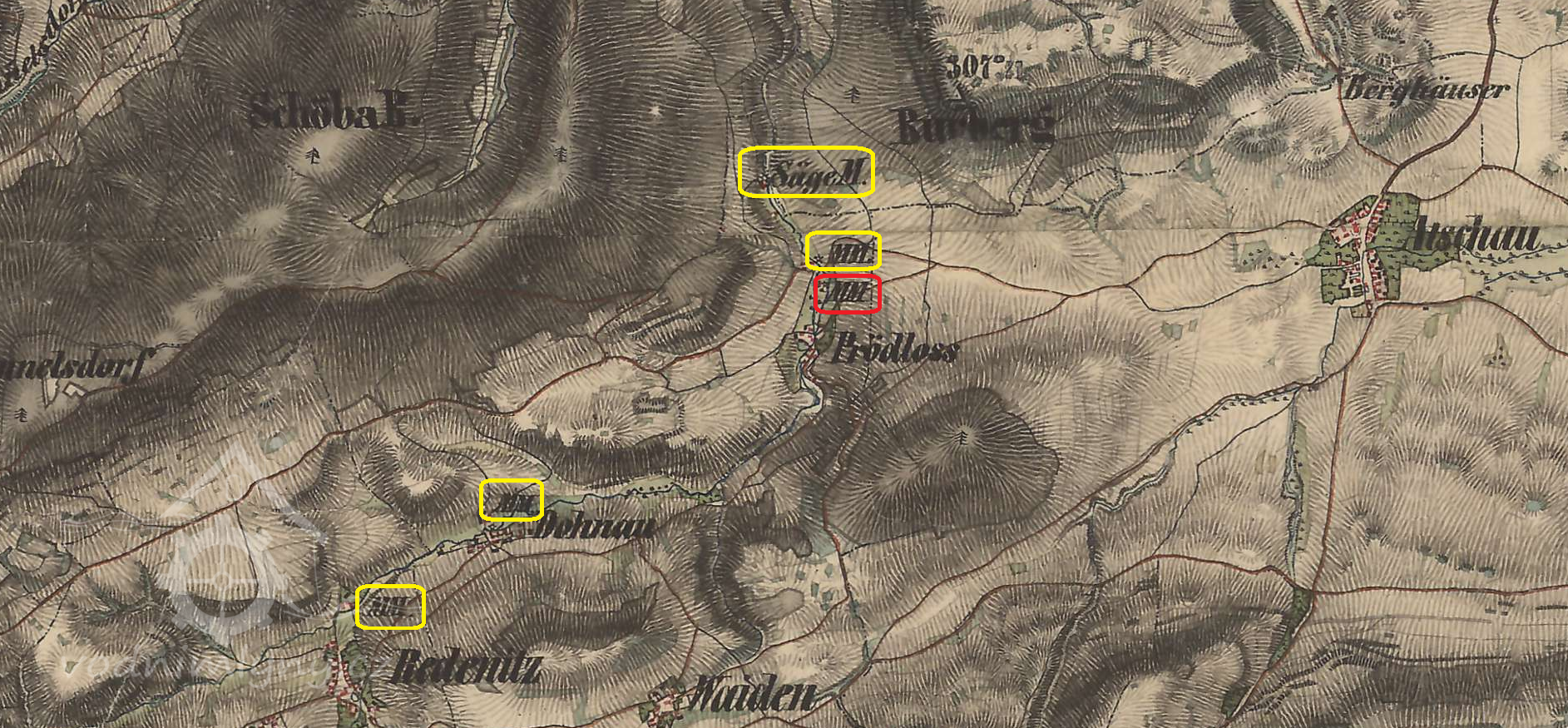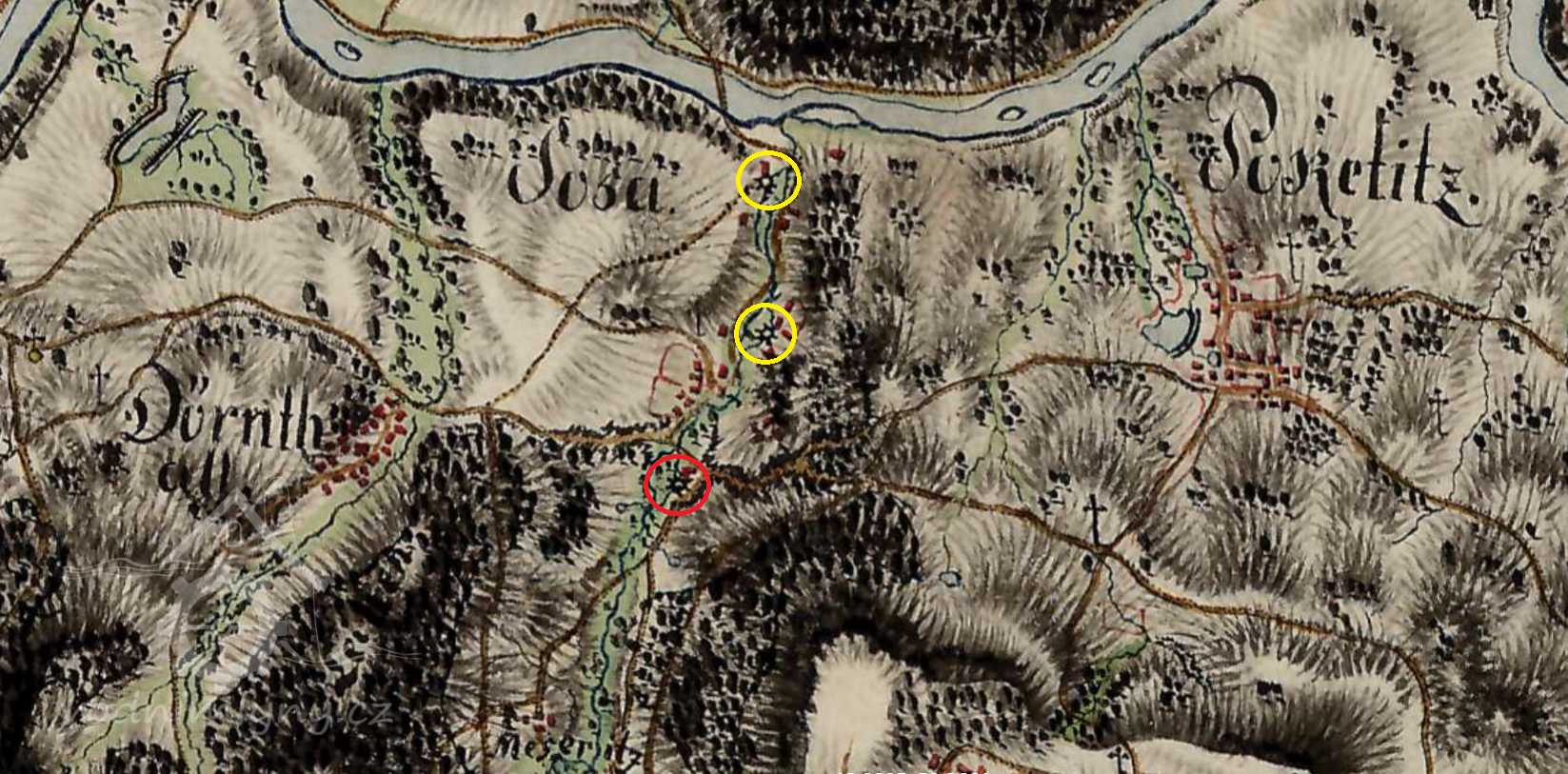 II. vojenské mapování, výřez, 1836-1852, © maps.arcanum.com