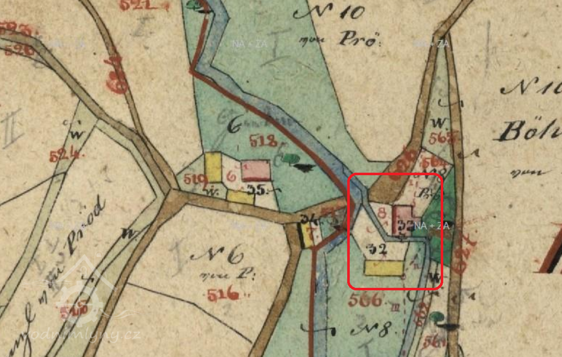 Indikační skica, výřez, 1842, © ags.cuzk.cz/archiv