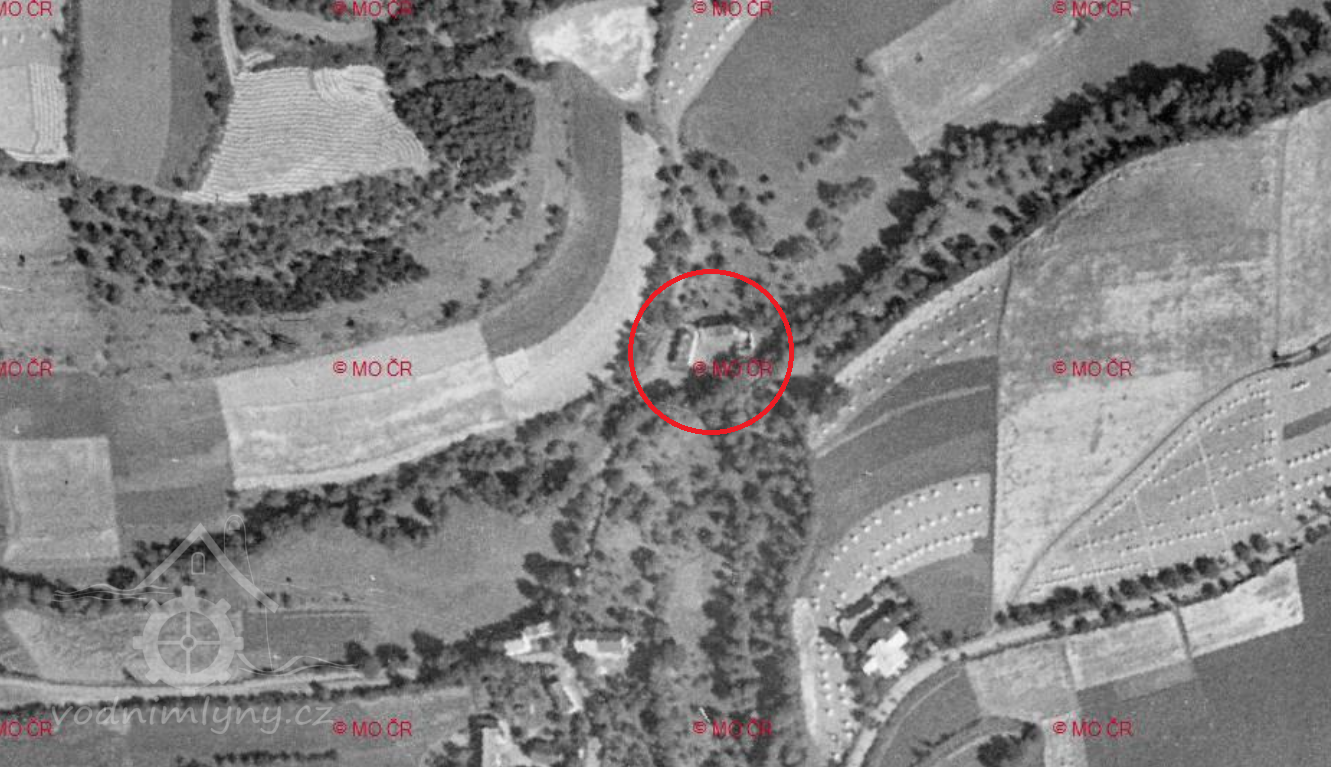 Letecký měřický snímek, výřez, 1958, © ags.cuzk.cz/archiv/