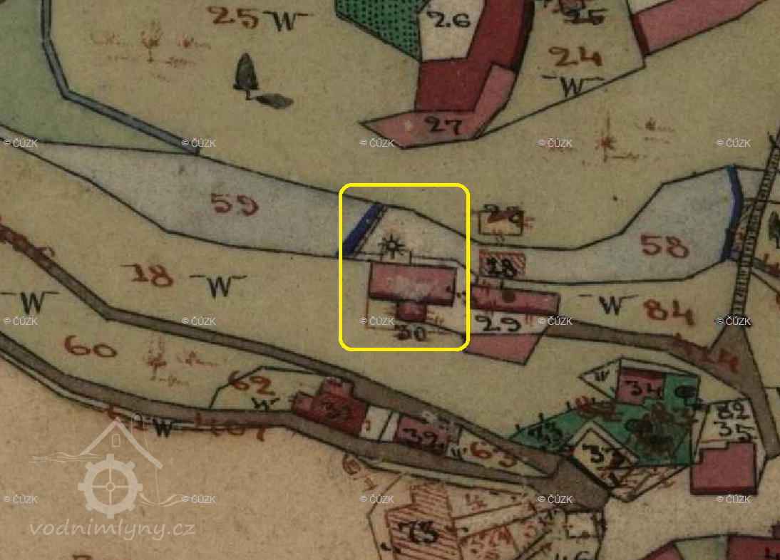Mlýn na originální mapě stabilního katastru, 1841, © Archiv - Zeměměřičský úřad