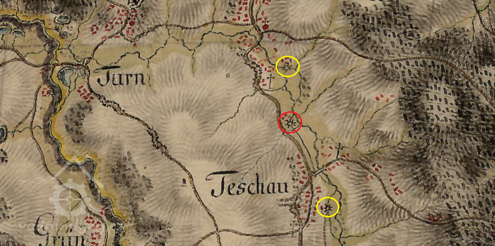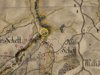 Mlýn na mapě I. vojenského mapování, 1764-1768 a 1780-1783, © Oldmaps.geolab.cz