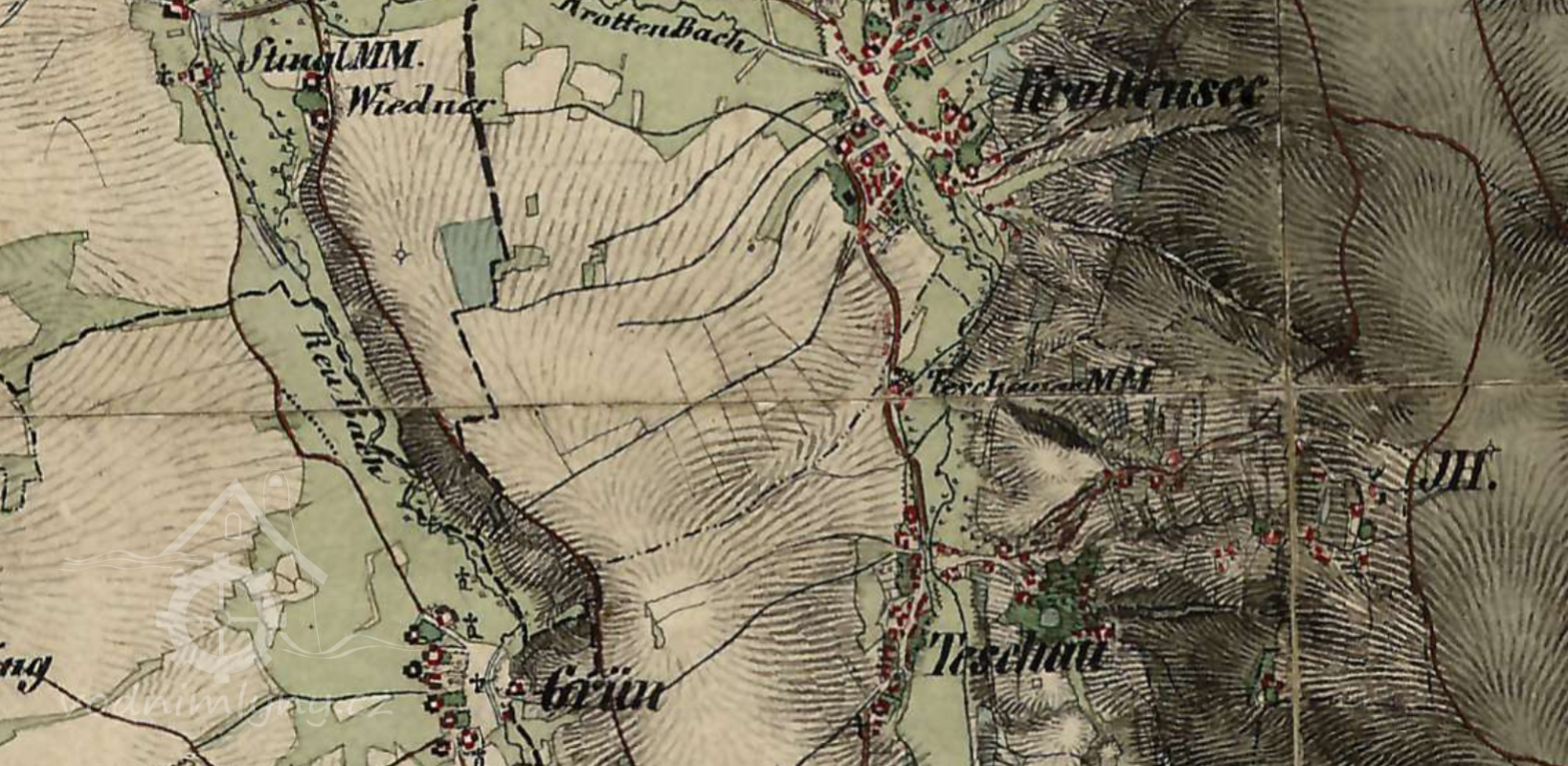 Originální mapa stabilního katastru, výřez - východní část, 1841, © ags.cuzk.cz/archiv/