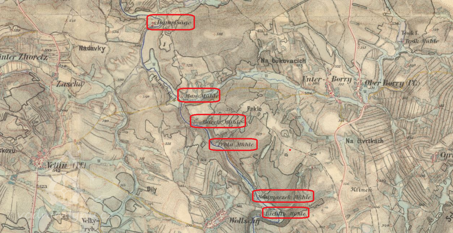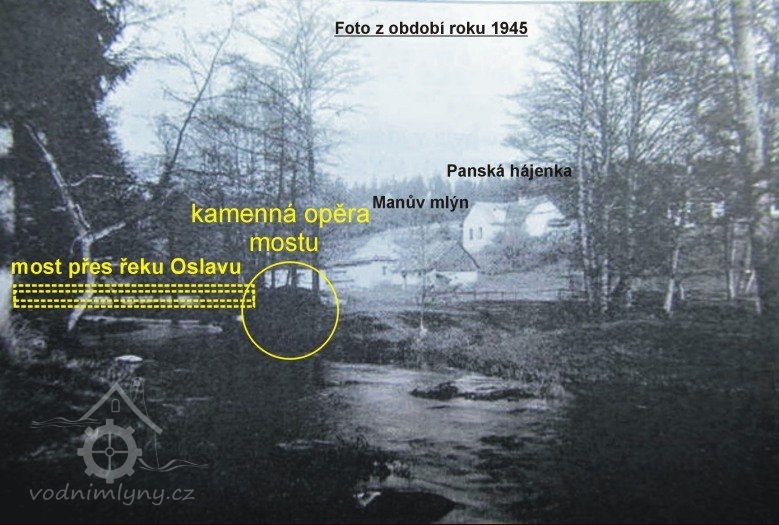 Řeka Oslava tehdy v těchto místech poskytovala nejen dostatek ryb, překrásná zákoutí a scenérie, ale také téměř každoroční rozsáhlé záplavy, které ohrožovaly lidská obydlí, a to především mlýny a mosty na celém povodí. Z tohoto důvodu již v roce 1901 a 1902 začalo uvažovat o řešení tohoto problému se záplavami. Nejvhodnějším řešením se tehdy jevilo postavení údolní přehrady v přímo v části zvané Peklo. Postupem času se však hledaly další varianty, které by měly větší vodní kapacitu a v roce 1932 a 1933 bylo započato o něco níže s přípravnými pracemi. Poválečná situace však přinesla nové požadavky i názory na tuto stavbu a celkové vodní hospodářství. Projekt na vybudování hráze byl po té posunut ještě nížeji, do současných míst hráze přehrady Mostiště. K realizaci stavby přehrady však po mnohých jednáních a dlouhých přípravách nakonec došlo až v 60-tých letech 20. Století. Stavbou přehrady Mostiště, byla také zatopena podstatná část údolí zvané Peklo. Původní koryto řeky Oslavy a kamenné zbytky mlýnů v této části řeky, jsou vidět pouze při nízkém stavu hladiny přehrady, jako například v roce 2005, při opravě hráze přehrady Mostiště. Kamenné základy Manova mlýna a panské hájovny, jsou vidět dodnes. (Zdroj-publikace: Rod Pavlasů z Pavlova, Vladimír Makovský-JUDr. Jaroslav Pavlas, PhD., rok vydání 2003)