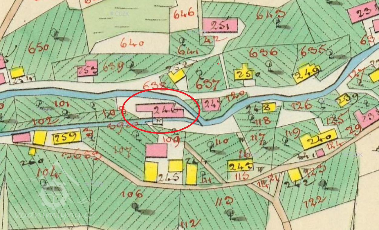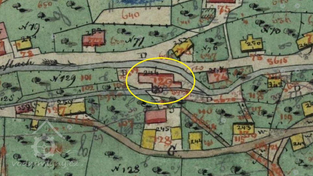 Popis1930: 1 kolo na svrchní vodu, hltnost 0,08 m3/s, spád 4,6 m, výkon 3,2 HP