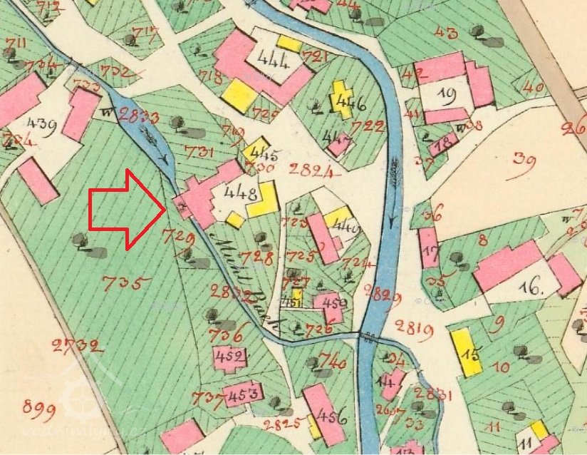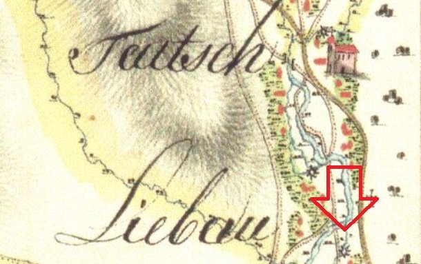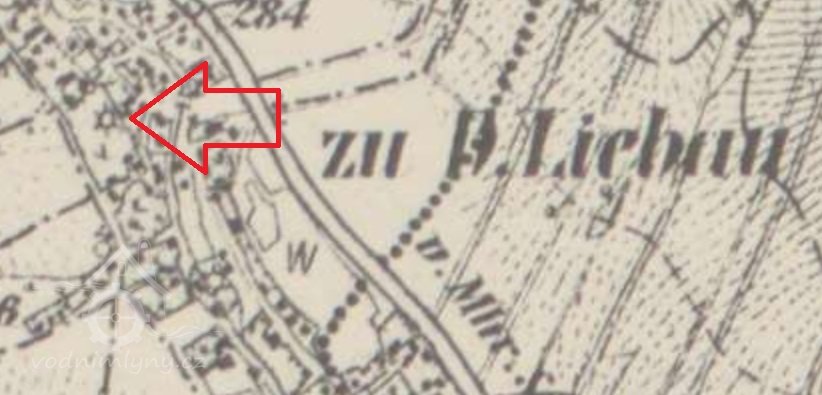 Mlýnský náhon překračoval hluboce zaříznuté koryto Liebesbachu nad Dorfwegbrücke pomocí dřevěného výtoku (koryta) a vedl kolem statků Höchsmann a Siegel ke mlýnu čp. 244, tzv. Herrenmühle (dnes Adolf Schinzel).