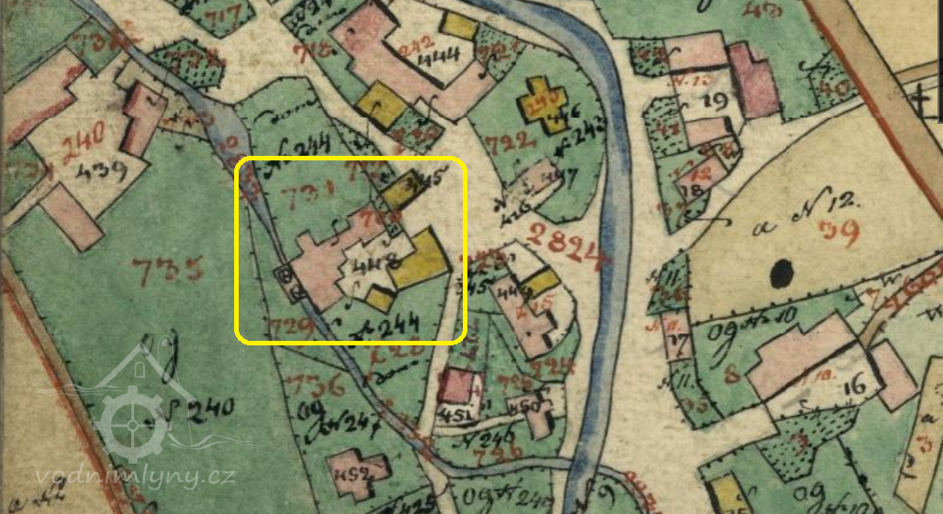 Mezi i čp. 238 a čp. 237 byl po určitou dobu na Liebesbachu samostatný jez, kterým se voda z Liebesbachu také sbírala a odváděla do horního příkopu Schinzelova mlýna čp. 244. Po otevření tohoto jezu zůstal přes Liebesbach pouze kanál pro převádění provozní vody tekoucí z mlýna č. 211, čímž odpadlo zavodňování Liebesbachovy oplatky. Tento mlýn je od konce 80. let 20. století mimo provoz, vodní kolo a mlýnské zařízení byly odstraněny a budova nyní slouží pouze k obytným účelům.