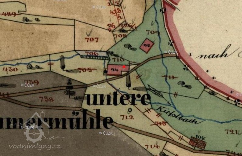 V polovině 18. století byl ve vsi mlýn s jedním kolem na nestálé vodě, není však známo, zda se jednalo o Horní či Dolní hamerský mlýn.