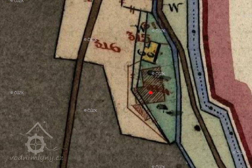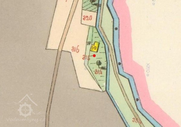 1938 byl mlýn ještě kompletní, 1946 byla část, pravděpodobně mlýnice, už zbořena.