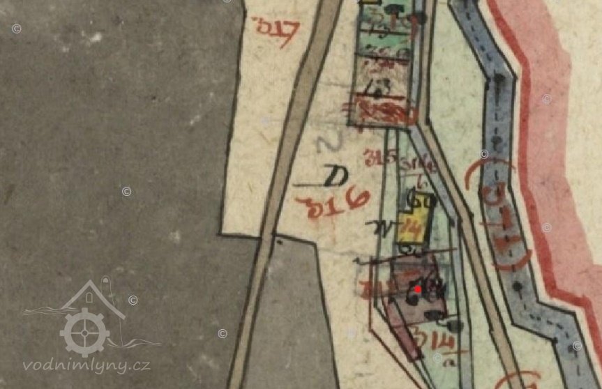 Na Císařském povinném otisku mlýn ještě nestojí, stojí tam jen budova ze spalného materiálu, která byla později zbořena. Mlýn je zaznamenán až na Indikační skice.