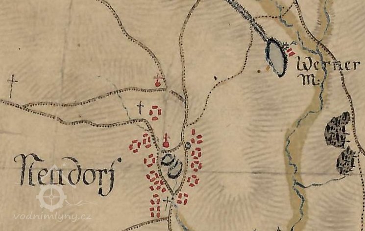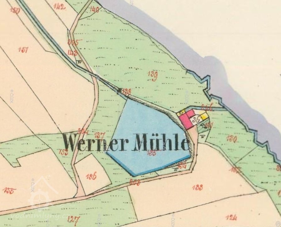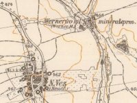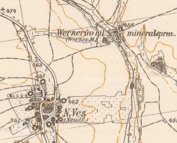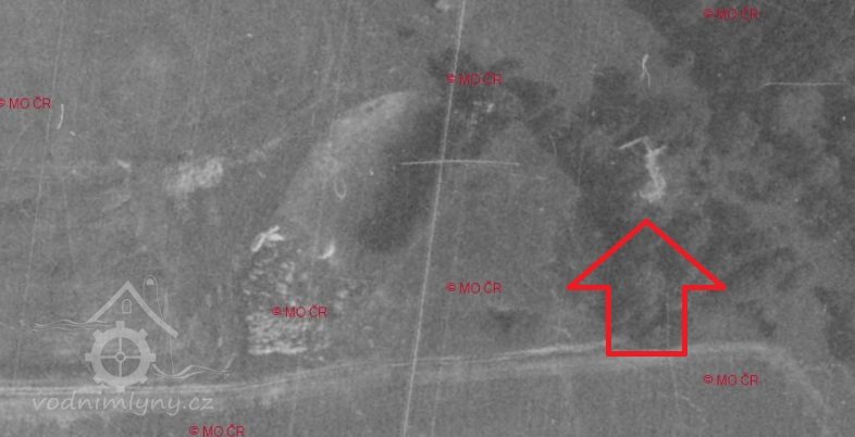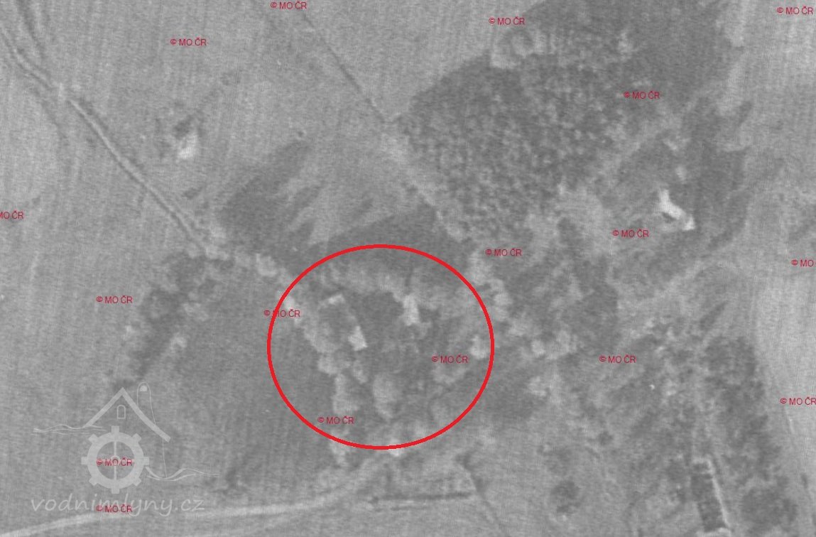 v 50. letech ještě budovy stály, v 60. letech již jen obvodové zdivo