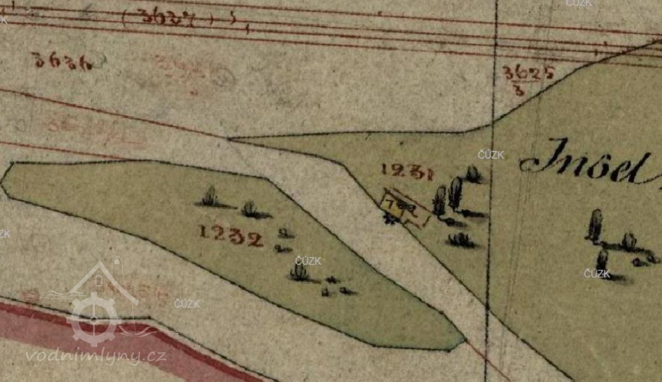 Ostrov byl oddělen od pevniny průlivem, který sloužil jako náhon.