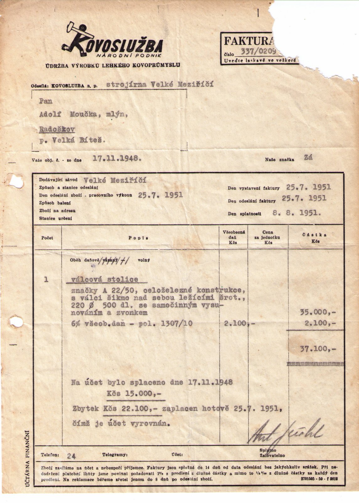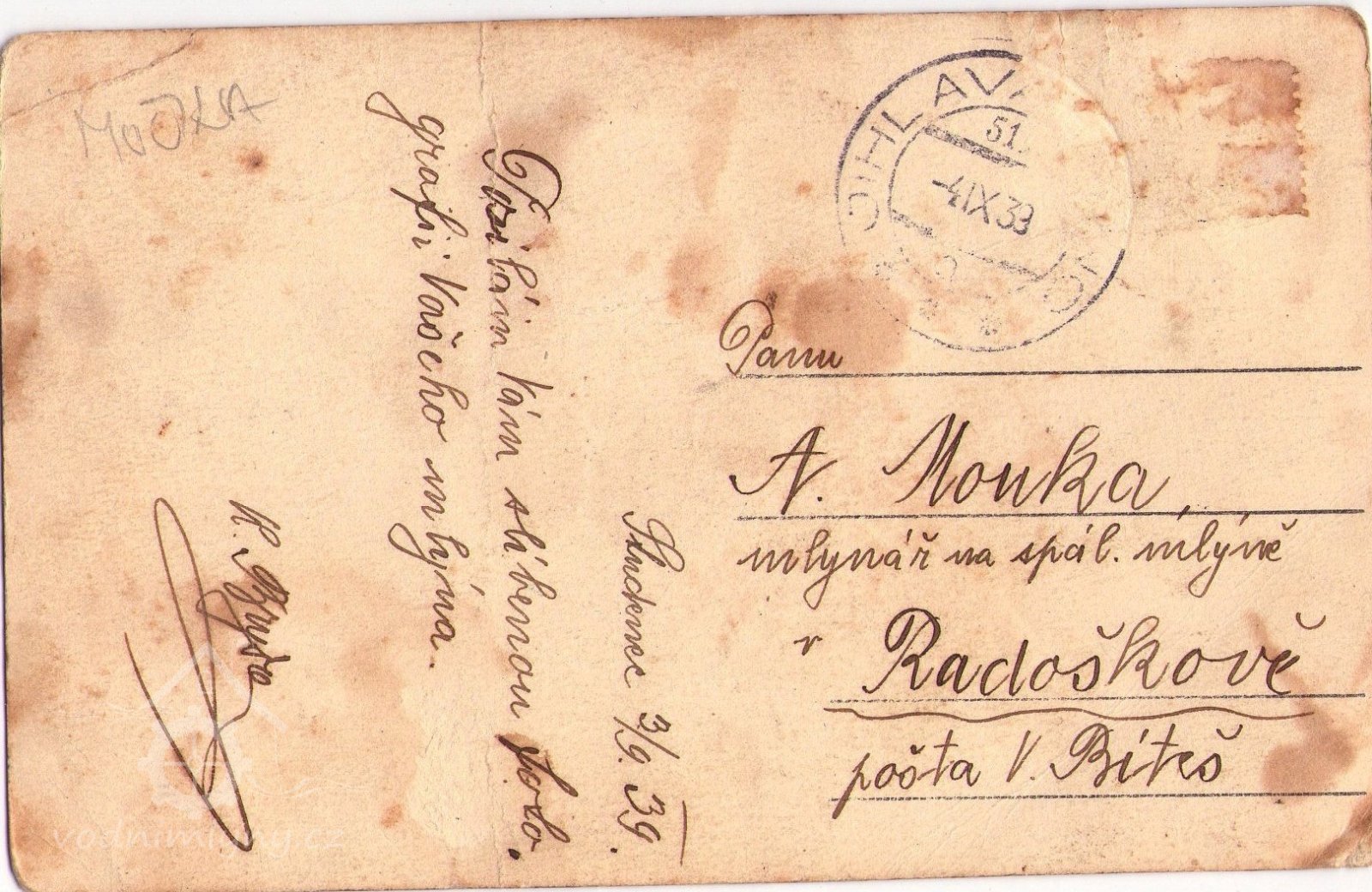 Svatební smlouva z 11.11.1884 František a Marie Moučková. Od 3.11.1900 Adolf Moučka, jejich předkem je Jiří Moučka z Kavrdova mlýna viz. milan-moucka.webnode.cz.