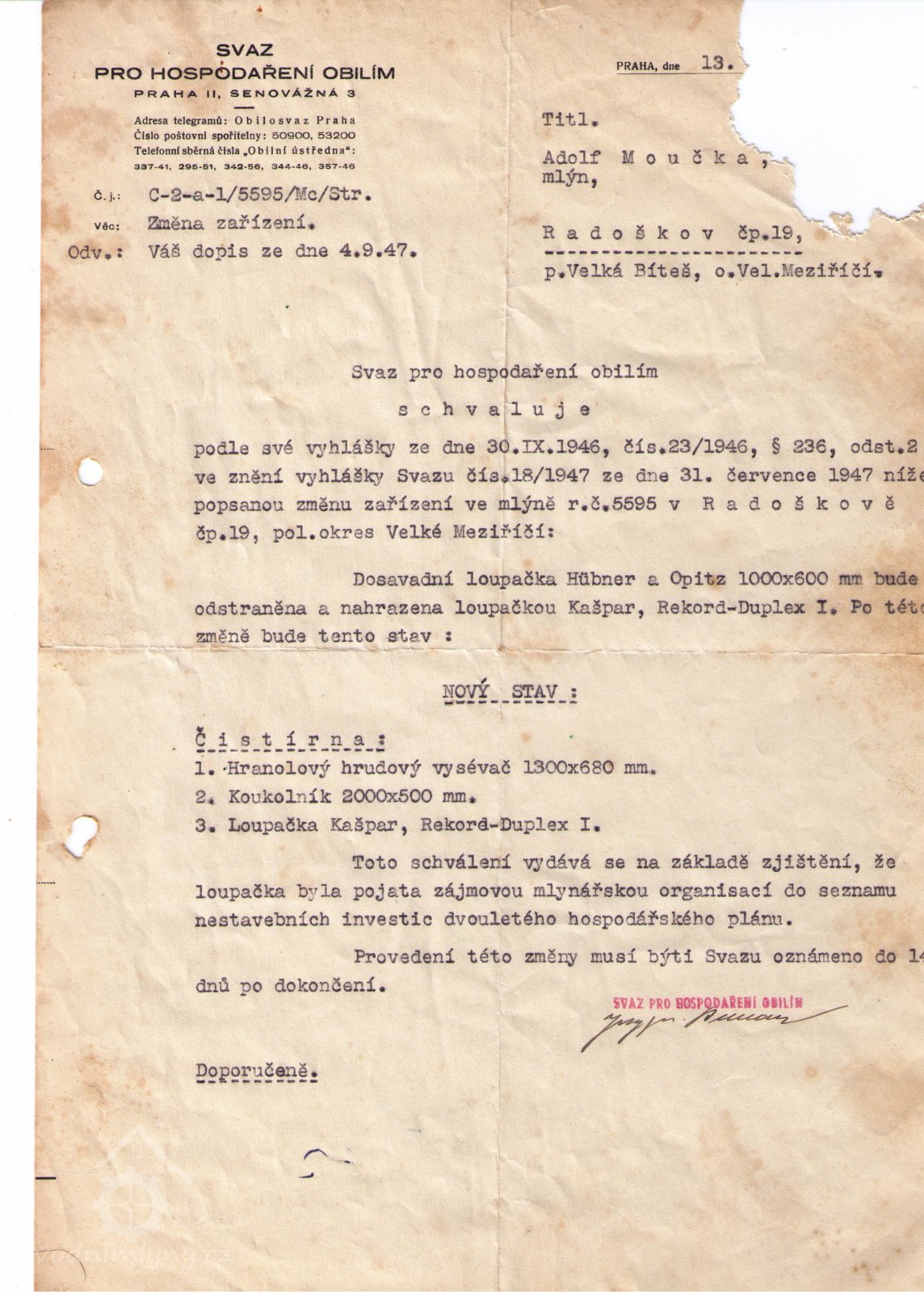 1862 se ve Štěpánovicích žení Josef Čížek, mlynář v Radoškově (asi Spálený, Moučkův mlýn) s místní Františkou Matouškovou. Josef je synem, vnukem a pravnukem Čížků, mlynářů z Víckova č. 8.