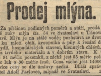 1897 prodej mlýna za 14.000 zl., majitel Adolf Pavlovec. (RR)