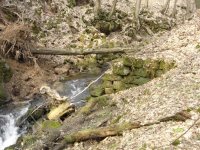 Jsou zde vidět jen zbytky zdiva a akumulační nádrž.