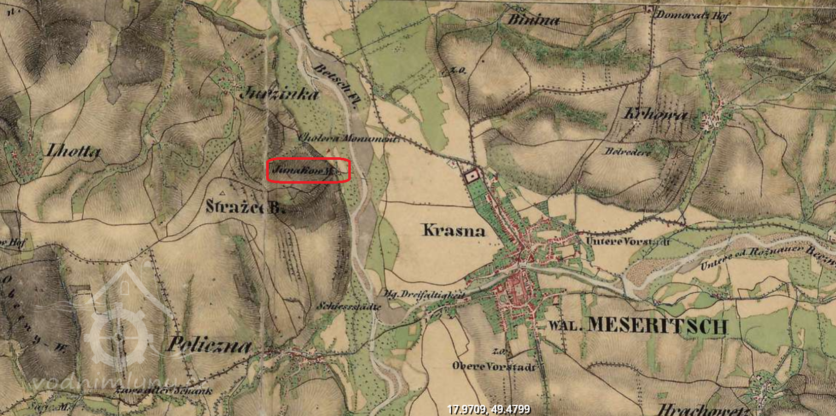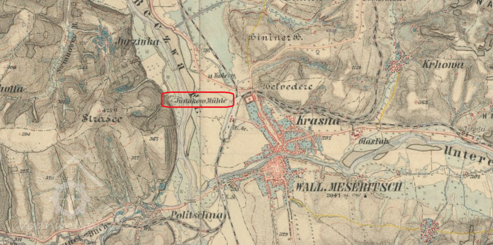 mlýn není patrný ani na letecké mapě z roku 1937