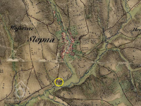 Velký spád potoka umožnil vybudování celé kaskády mlýnů, které nefungovaly současně a byly postaveny na 6 místech. První se nacházel pod skálou Čertovica, ta však již neexistuje. Ještě dnes ale můžeme v těchto místech vystopovat přívod vody a zástavu. V knize Luhačovické Zálesí se uvádí, že v roce 1663 byl ve Slopném při turecko-tatarském vpádu vypálen mlýn. Při kopání základů domku č. 28 se toto potvrdilo. Mlýn pod vesnicí disponoval největším zdrojem vody po zapojení přívodu ze splavu Pod břehy. U mlýna vznikla později i pila. Předchůdce dnešního funkčního mlýna, malý vodní mlýn, byl ještě kolem roku 1913 ve společném vlastnictví majitelů domů č. 8 (Kozubík)a č. 87 (Machů).