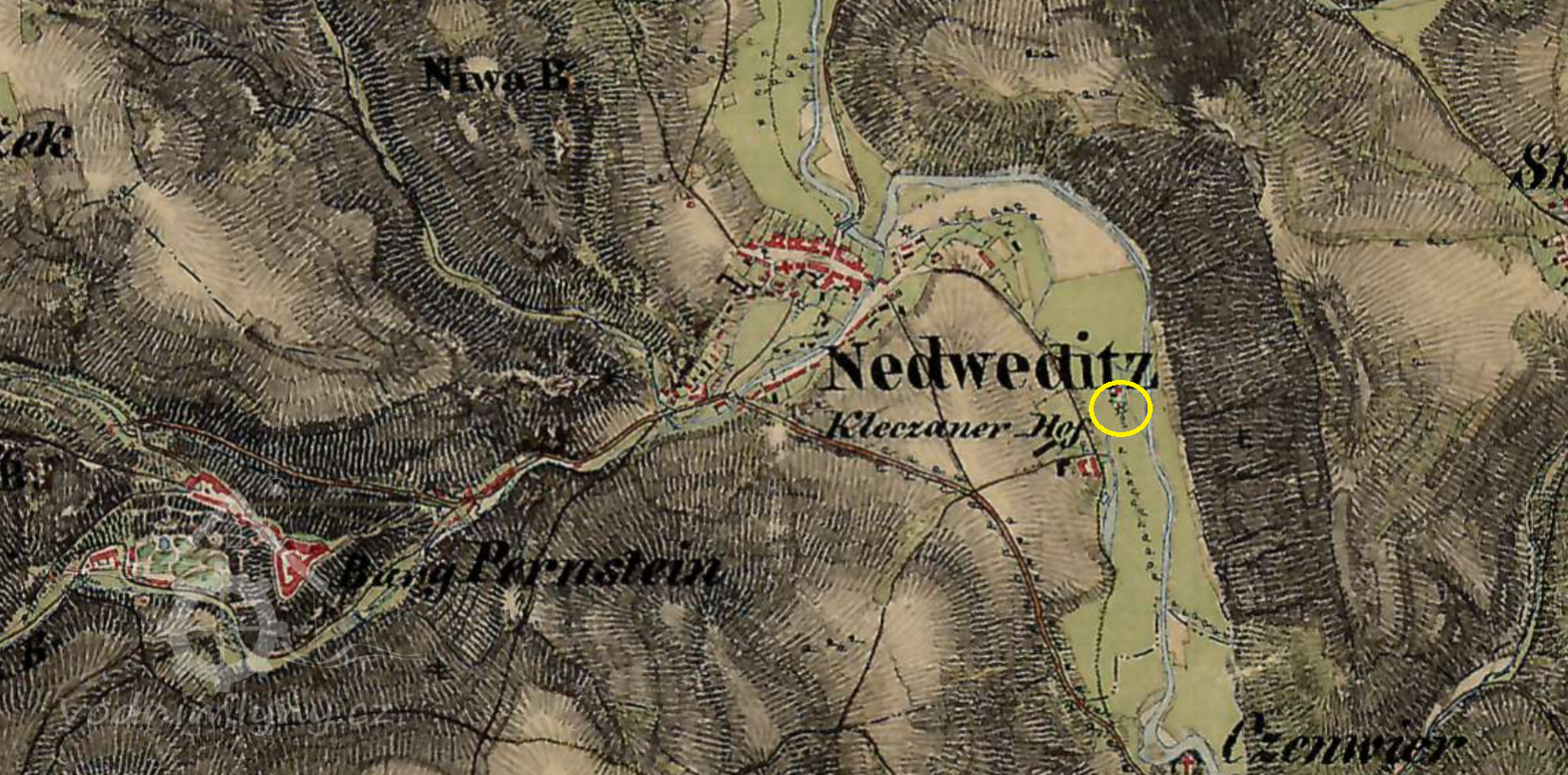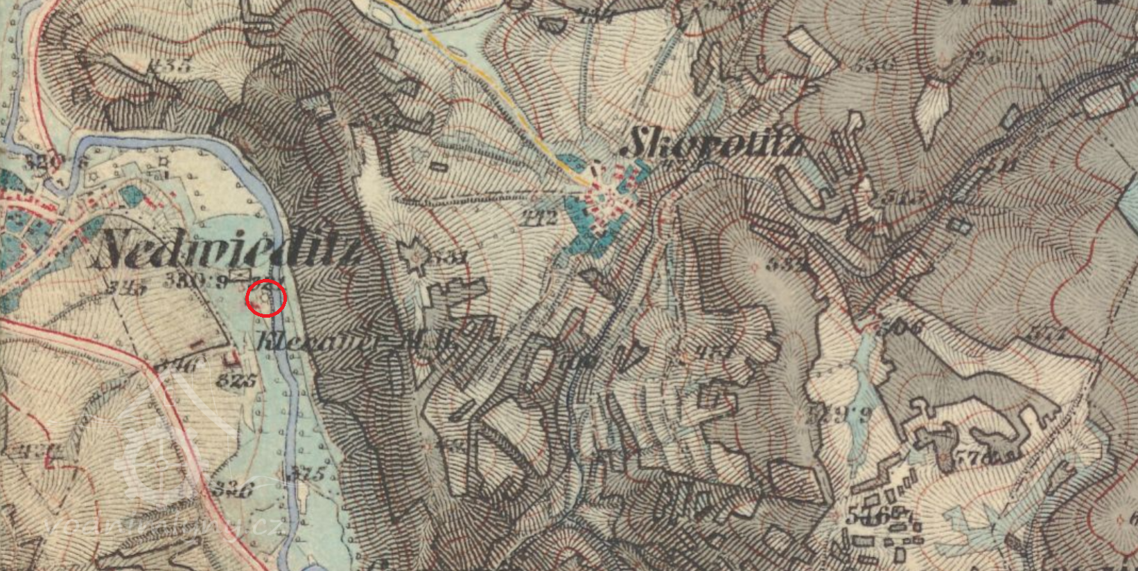 Mlýn leží v jihovýchodní části obce.