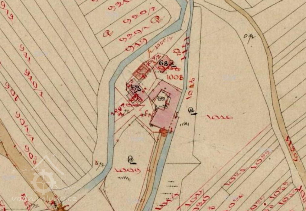 Bývalý vodní mlýn leží severozápadně pod obcí Jabloňany na pravém břehu potoka Úmoří na levém břehu náhonu.