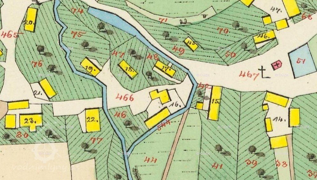 PopisV r. 1930 zde bylo 1 kolo na svrchní vodu, průtok 0,047 m3/s, spád 7 m, výkon 3,5 k.