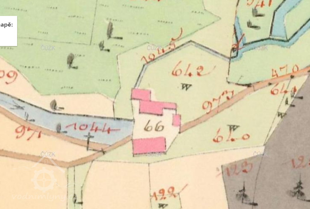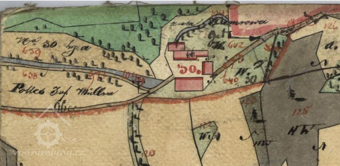 1824 - 1853 Josef Poles ml. (děti 1824 - 1849, u dětí 1837 a 1839 chybné č.p., 1834 Indikační skici, + 1853 ve věku 55 let, mlynář)