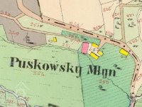 Pod martinovským dvorem s rozprostíraly ,,..... lúčky po hranicích pustkovskou a s lesem Okovicí, jenž v gruntě martinovské jest. .... po levé ruce lúčka Niva, která má náležeti do Pustkovce, poněvadž mlýnek někdy na gruntě pustkovském byl zbudován.