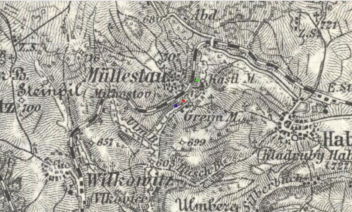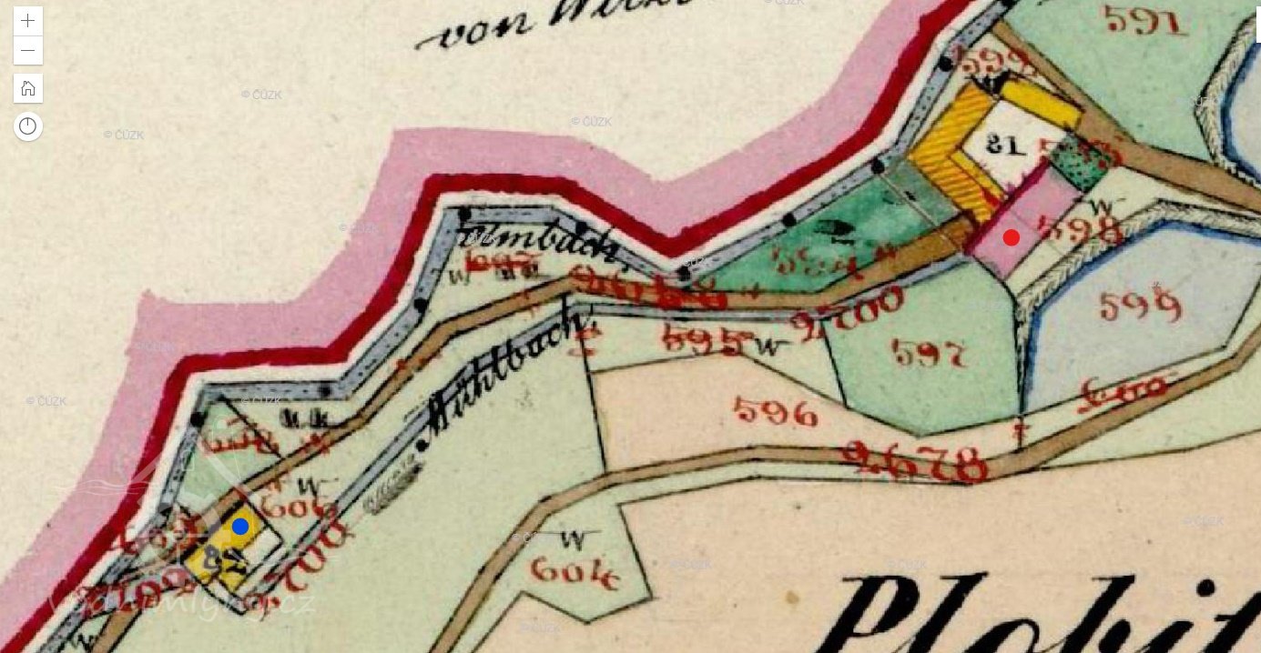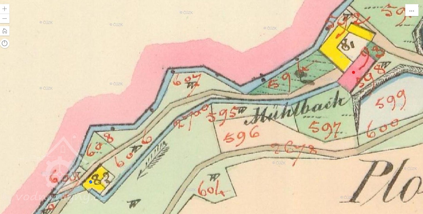 1839 - zakreslen na Indikační skice. Ještě tam nemá samostatné popisné číslo, takže pravděpodobně tvořil jeden celek s Horním Kronovým mlýnem. Majitel Wenzl Schneider.