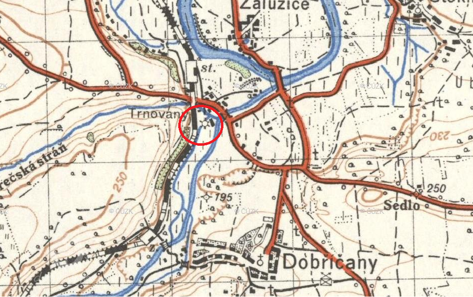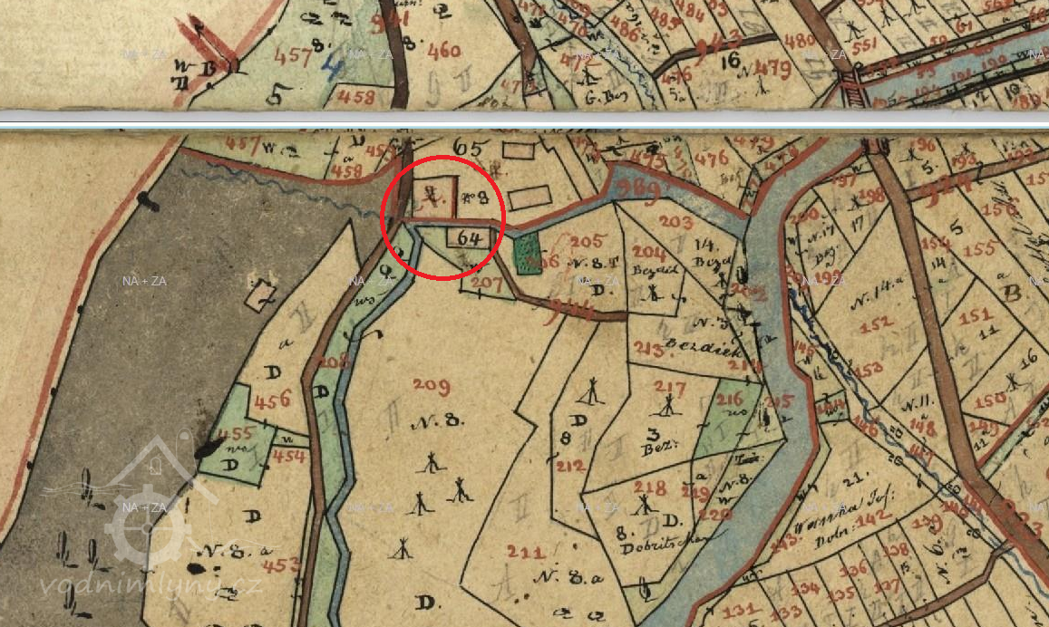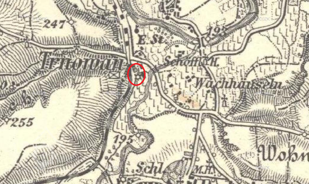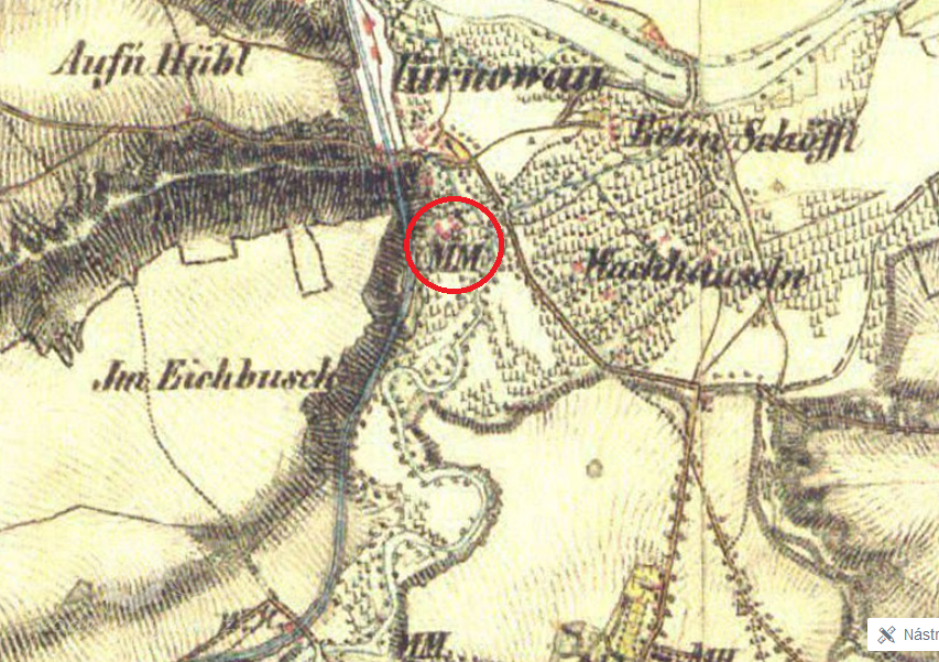 Mlýn původně že 14.stoleti, do současné velikosti přestavěn v roce 1867. Od té doby sloužil jako společenský dům, ubytovna pro česáče chmele a sqwat pro narkomany. O jeho údržbu nikdo moc nedbal. Současní majitele se ho snaží zachránit, tak snad se jim to povede. Obětavě v něm i bydlí.