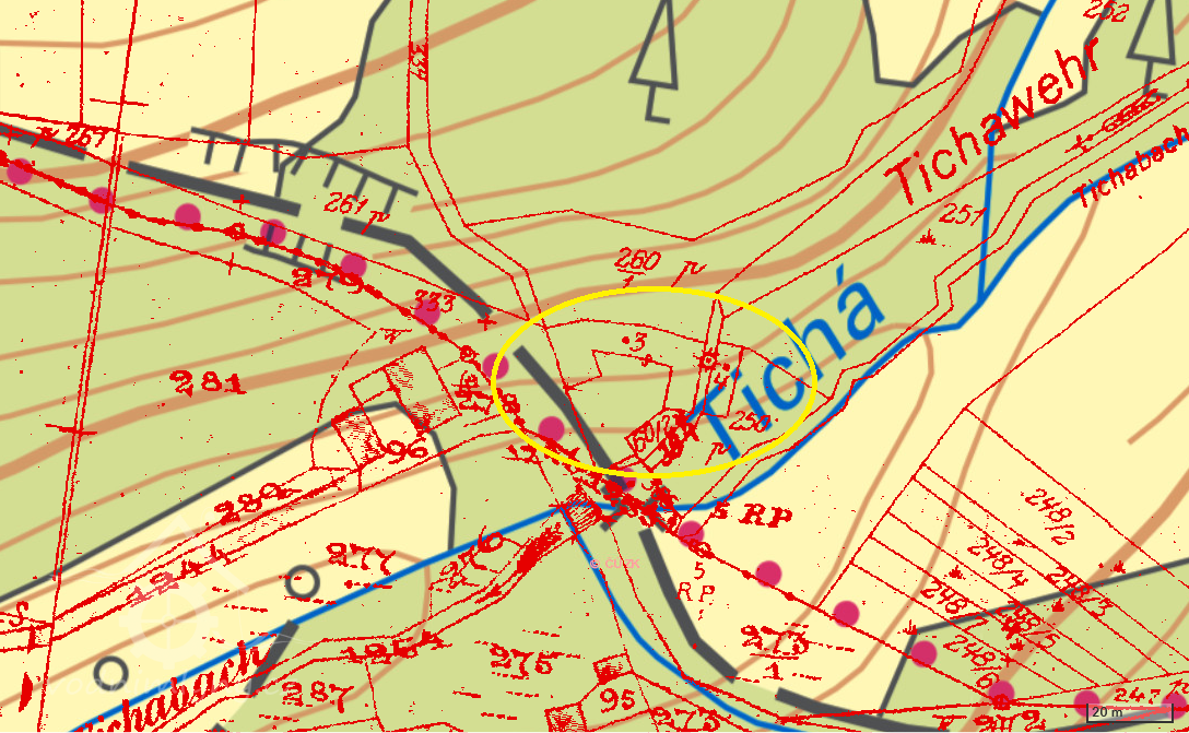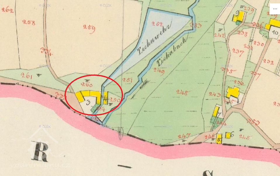1945 - vysídlení německého obyvatelstva. Na leteckém snímku z roku 1948 je mlýn ještě v pořádku.