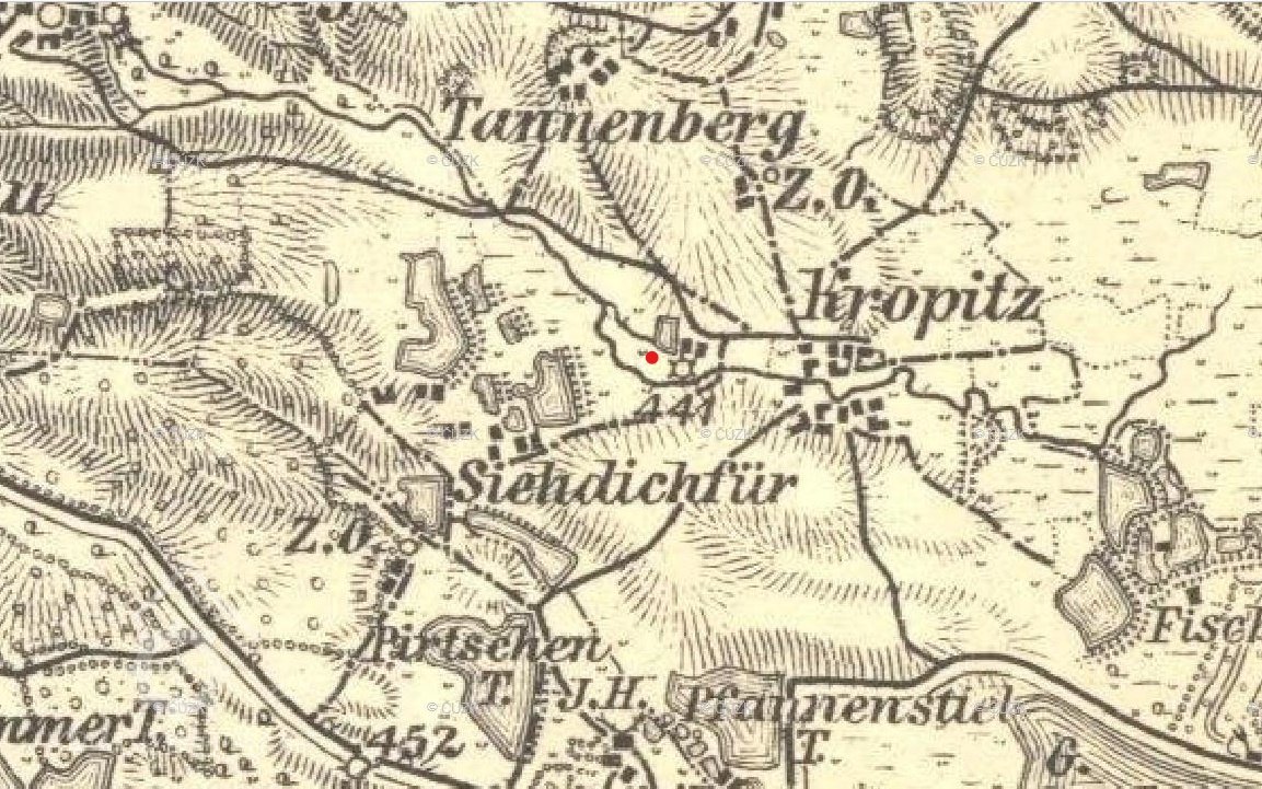 Vyznačen na I. vojenském mapování.
