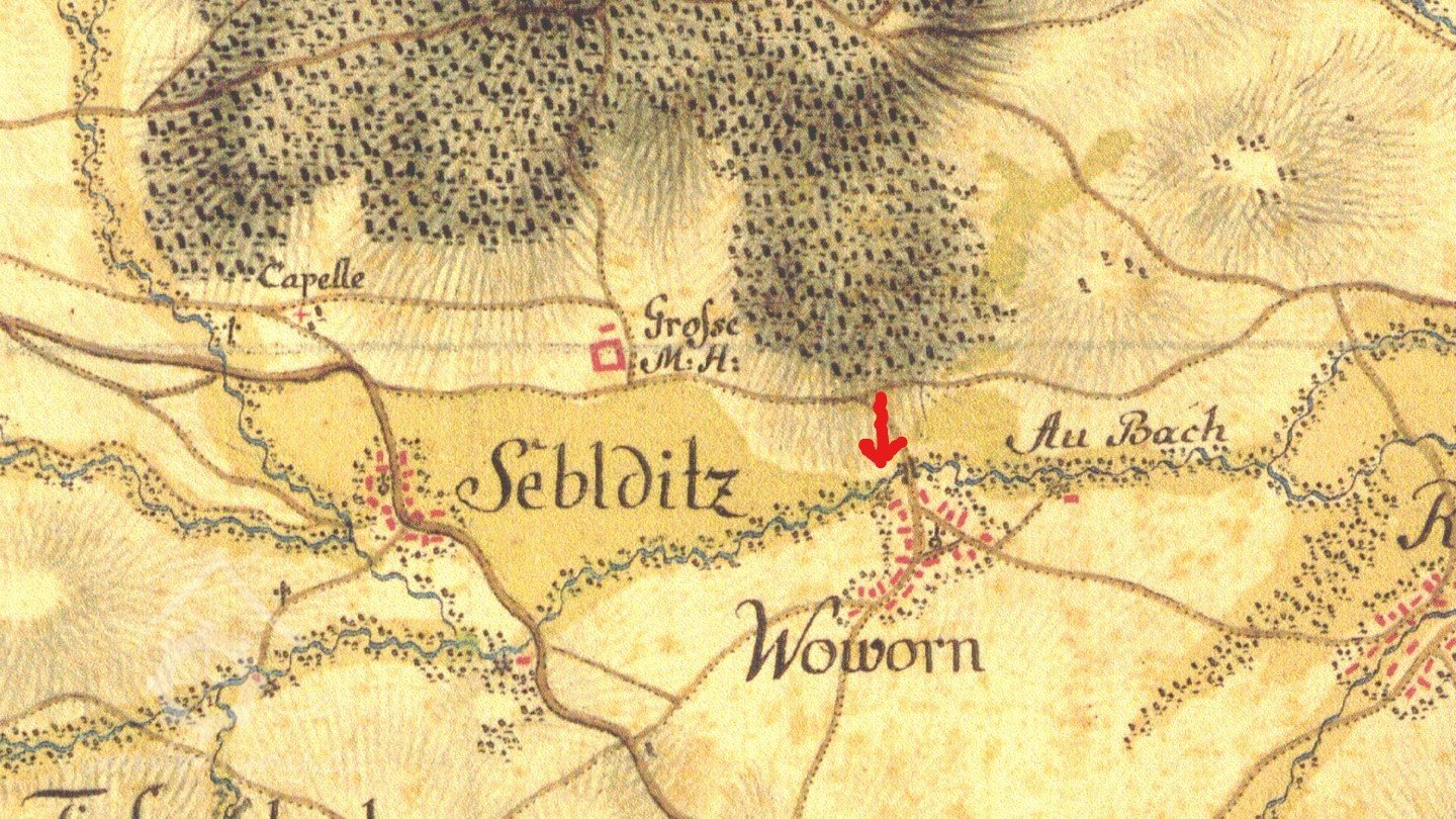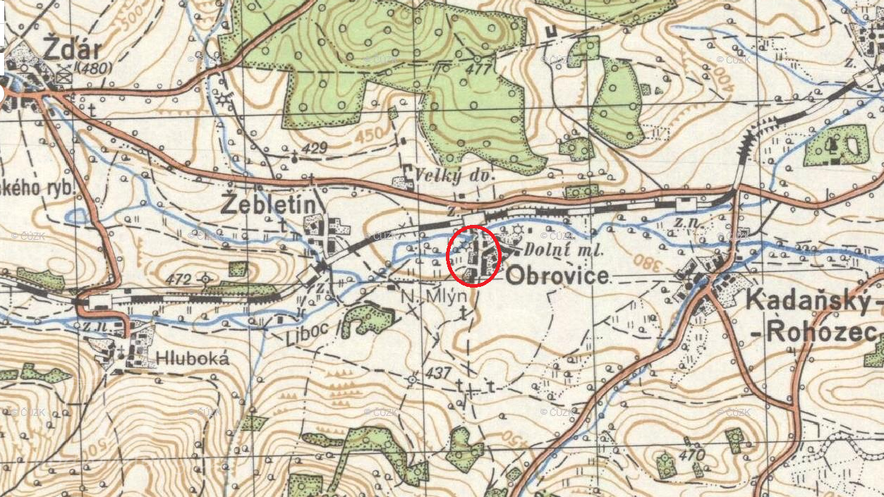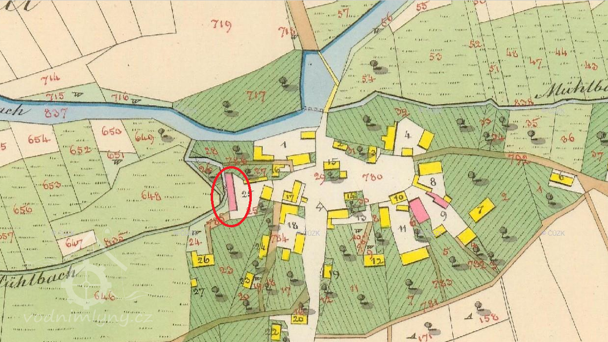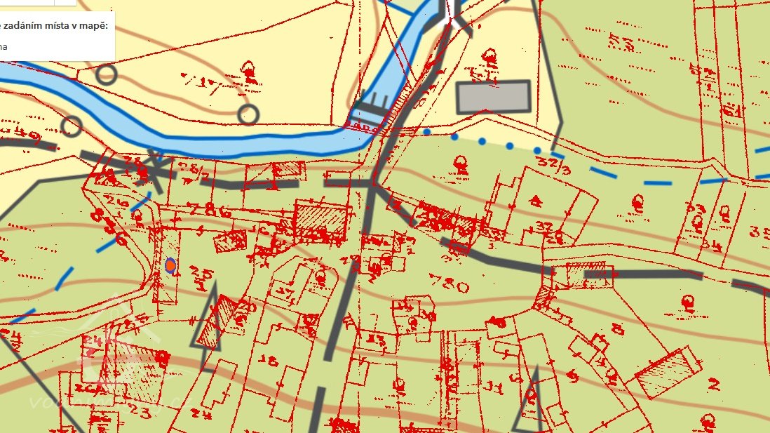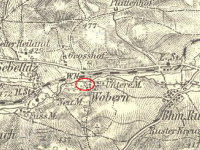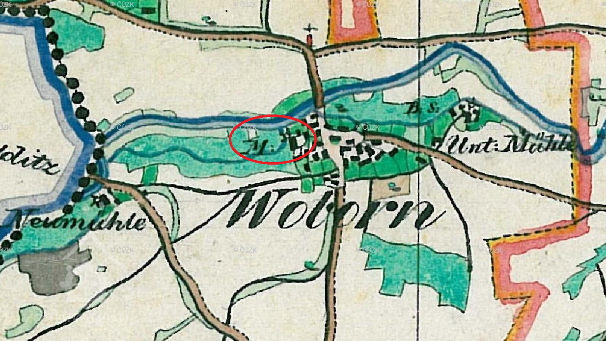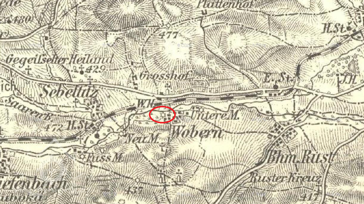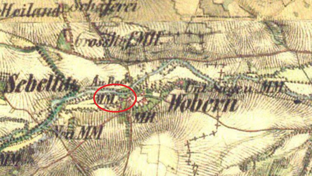 Zobrazen na mapě I. vojenského mapování.