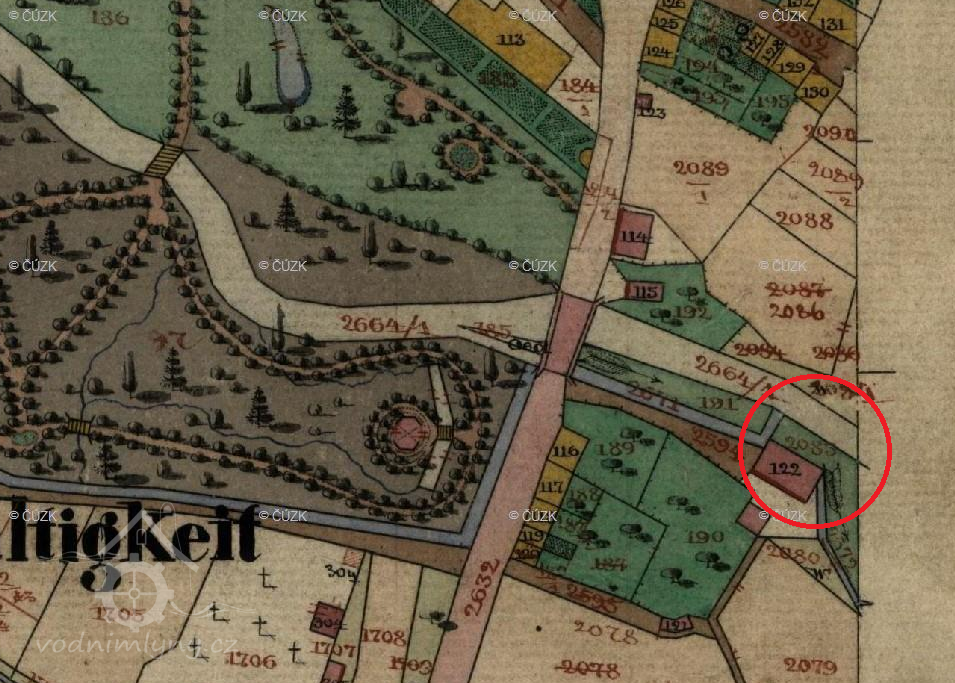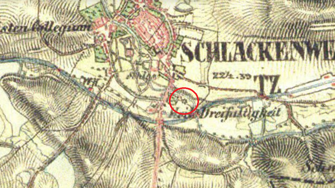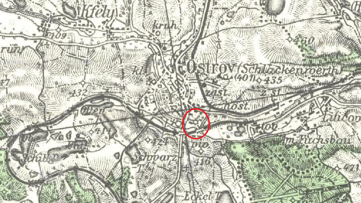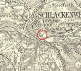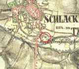 Zobrazen na mapě I. vojenského mapování.