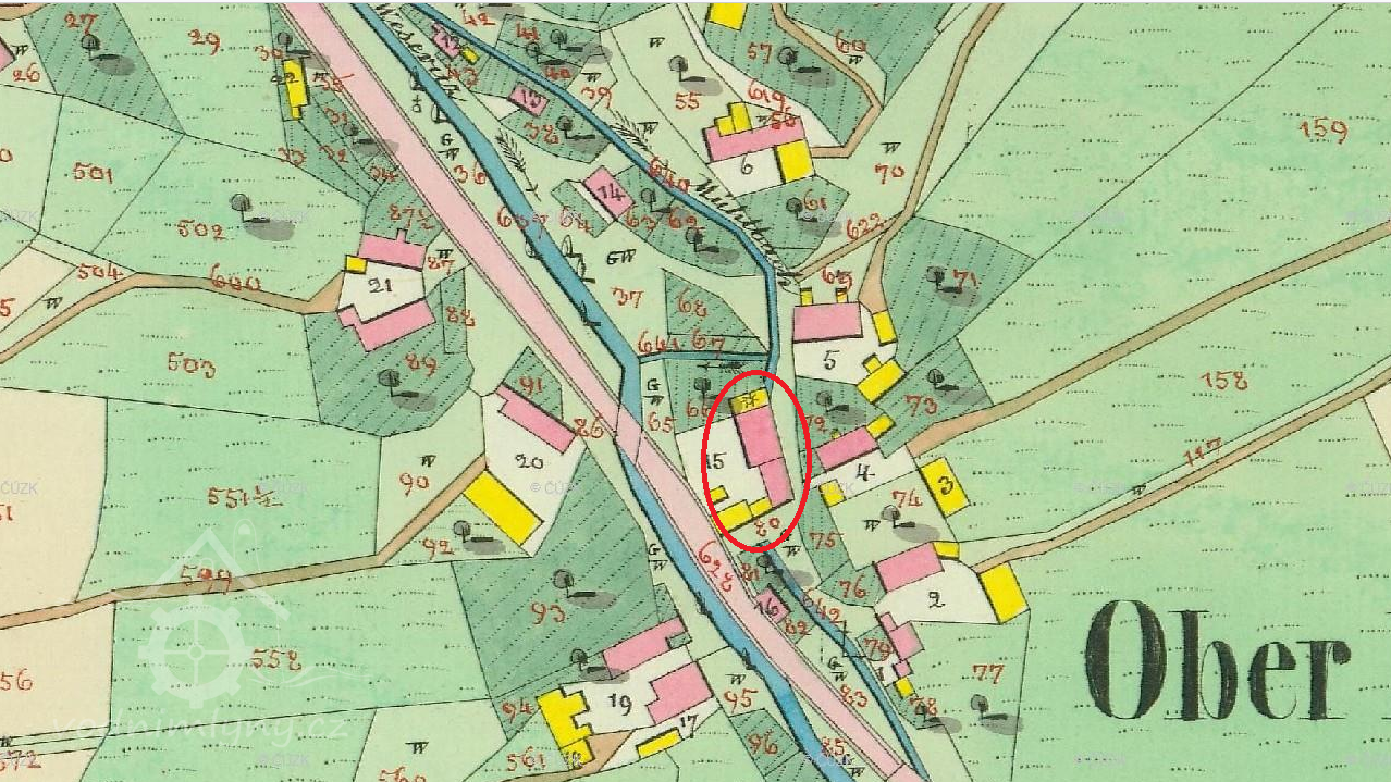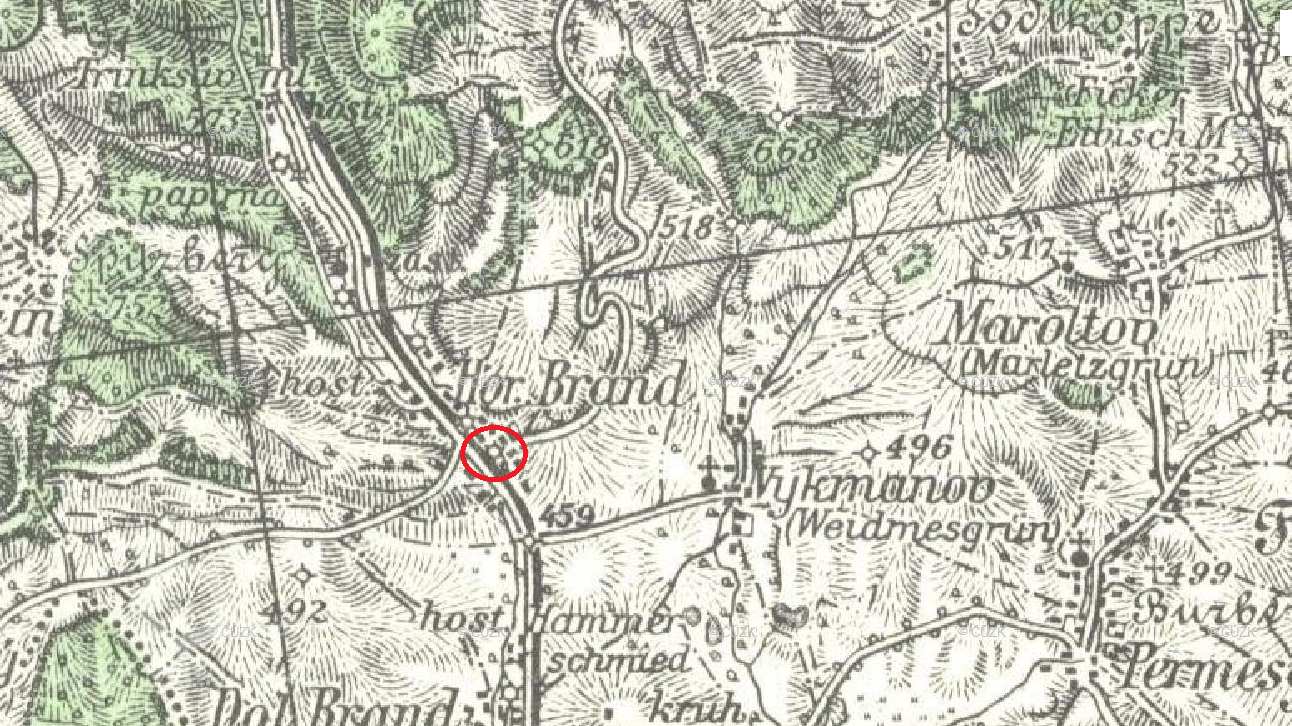 Zobrazen na mapě I. vojenského mapování.