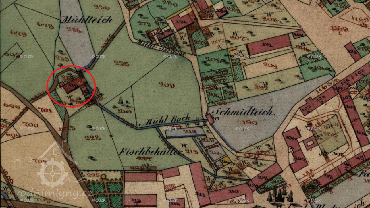 Na mapě I. vojenského mapování zobrazen jen jako objekt. Jako vodní dílo vyznačen na mapách pozemkového katastru.