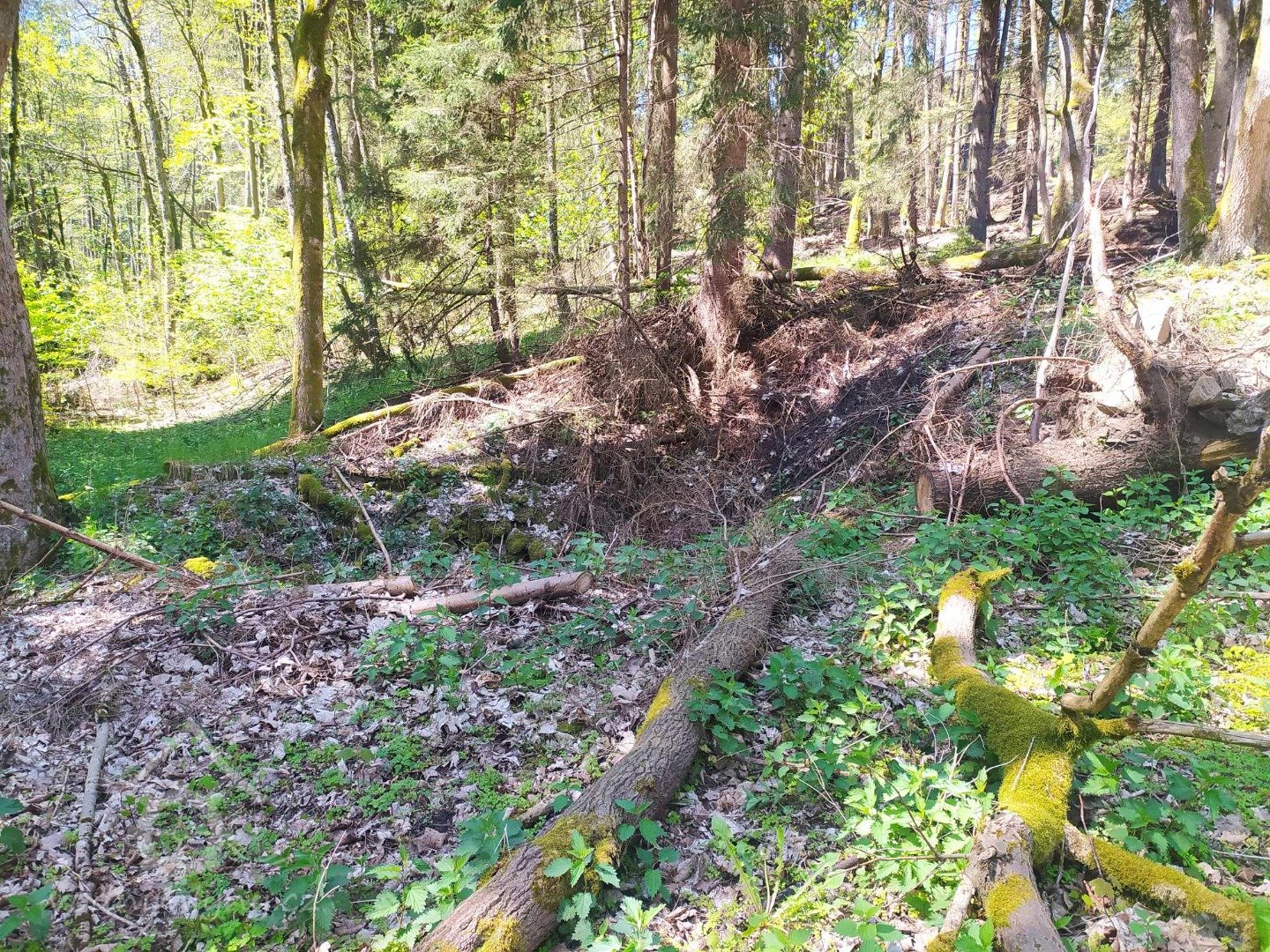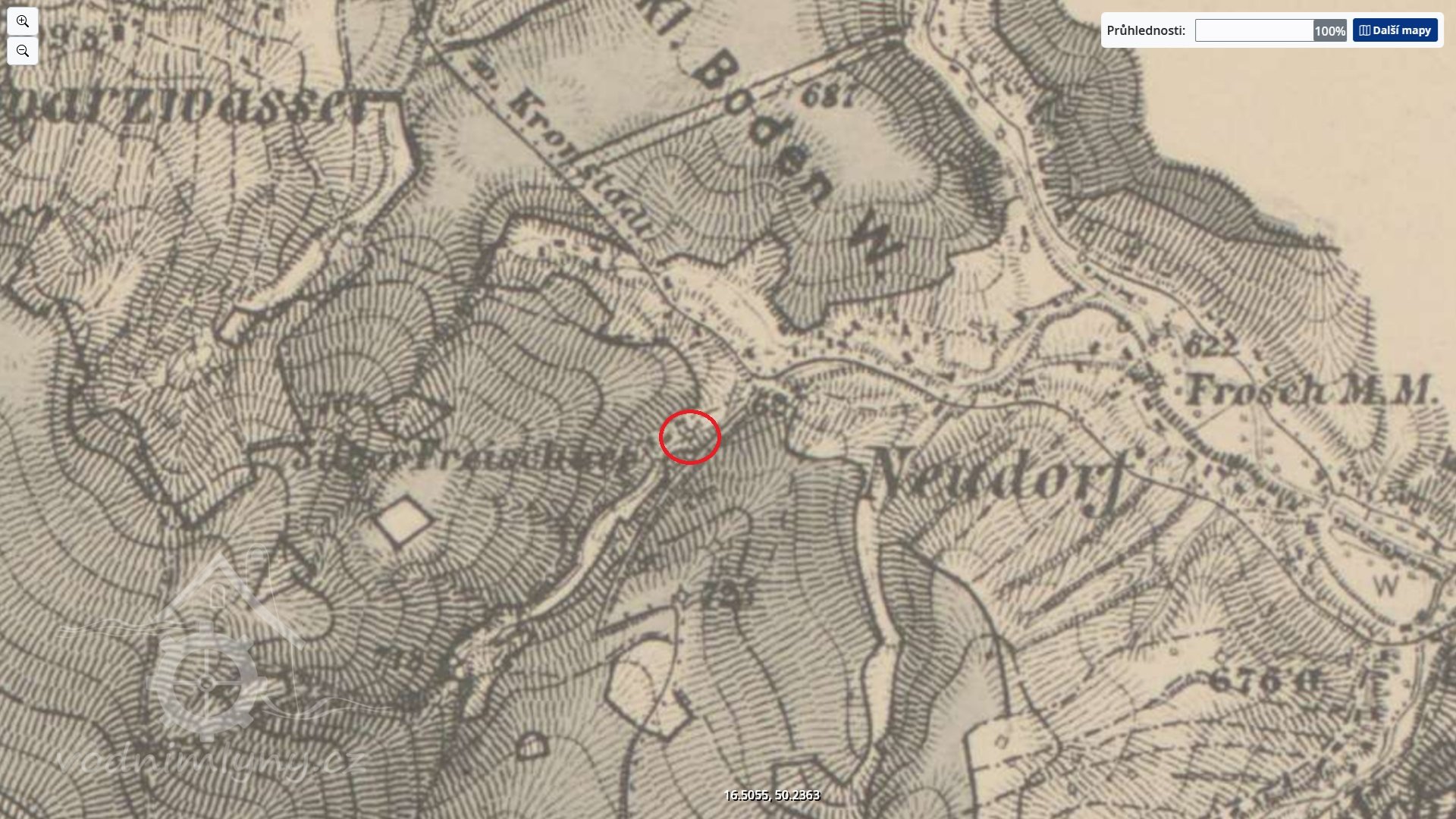 Zaniklý lesní mlýn, dochována mohutná lednice a odpadový kanál. Základy budov v nedávné době částečně rozvezeny při svážení dřeva.