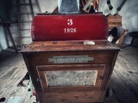 Válcová stolice s etiketou výrobce, 03 2024, © Jana Beranová, (Prvky na obrázku: válcová stolice, značka výrobce na technologickém vybavení)