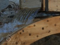Vodní kolo bylo obnoveno v roce 2012 podle původních zápisů a šablon sekernickým mistrem Františkem Mikyškou z Kojetína u Sedlčan. Je na původní dochované kovové hřídeli s jednou rozetou. Průměr je 455cm, šířka mezi kruhy 49cm, celková 68cm.