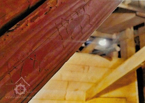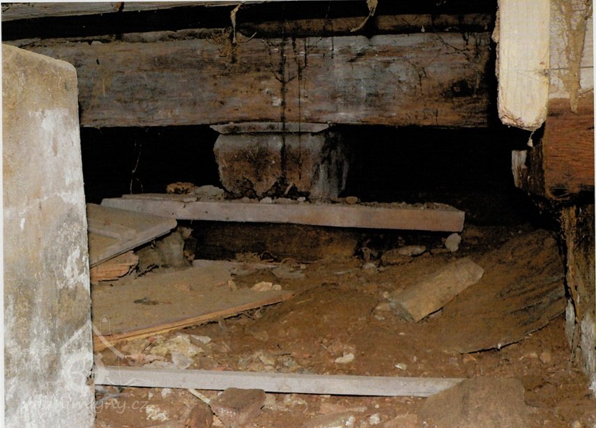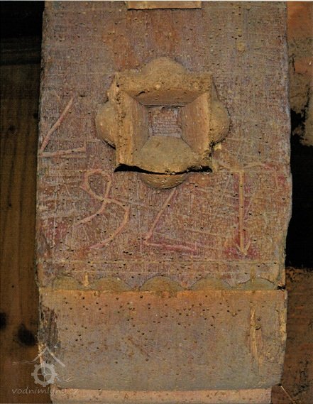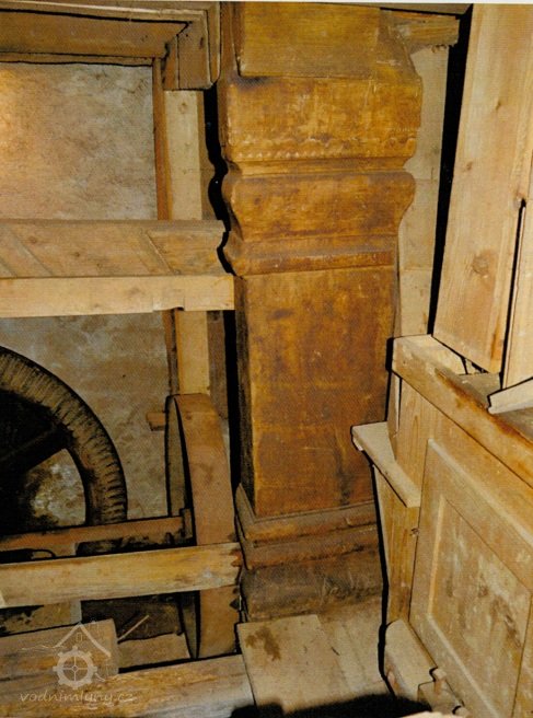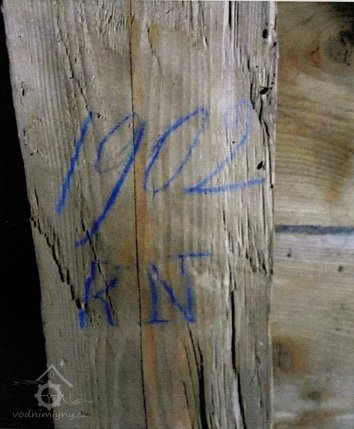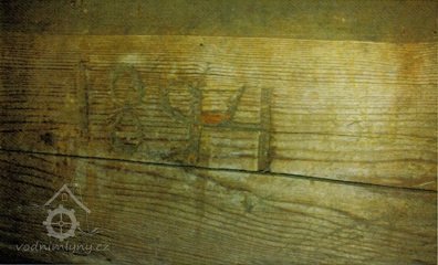 mlýnicedruhotně použitý sloupek mlýnské hranice v patře nad mlýnicí1755