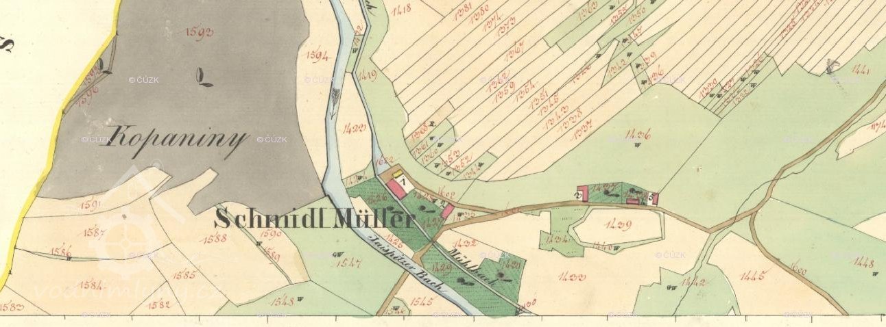 s letopočtem 1756 (obr. 2). V terénu lze vystopovat suchý, již zrušený vodní náhon vedoucí od cca