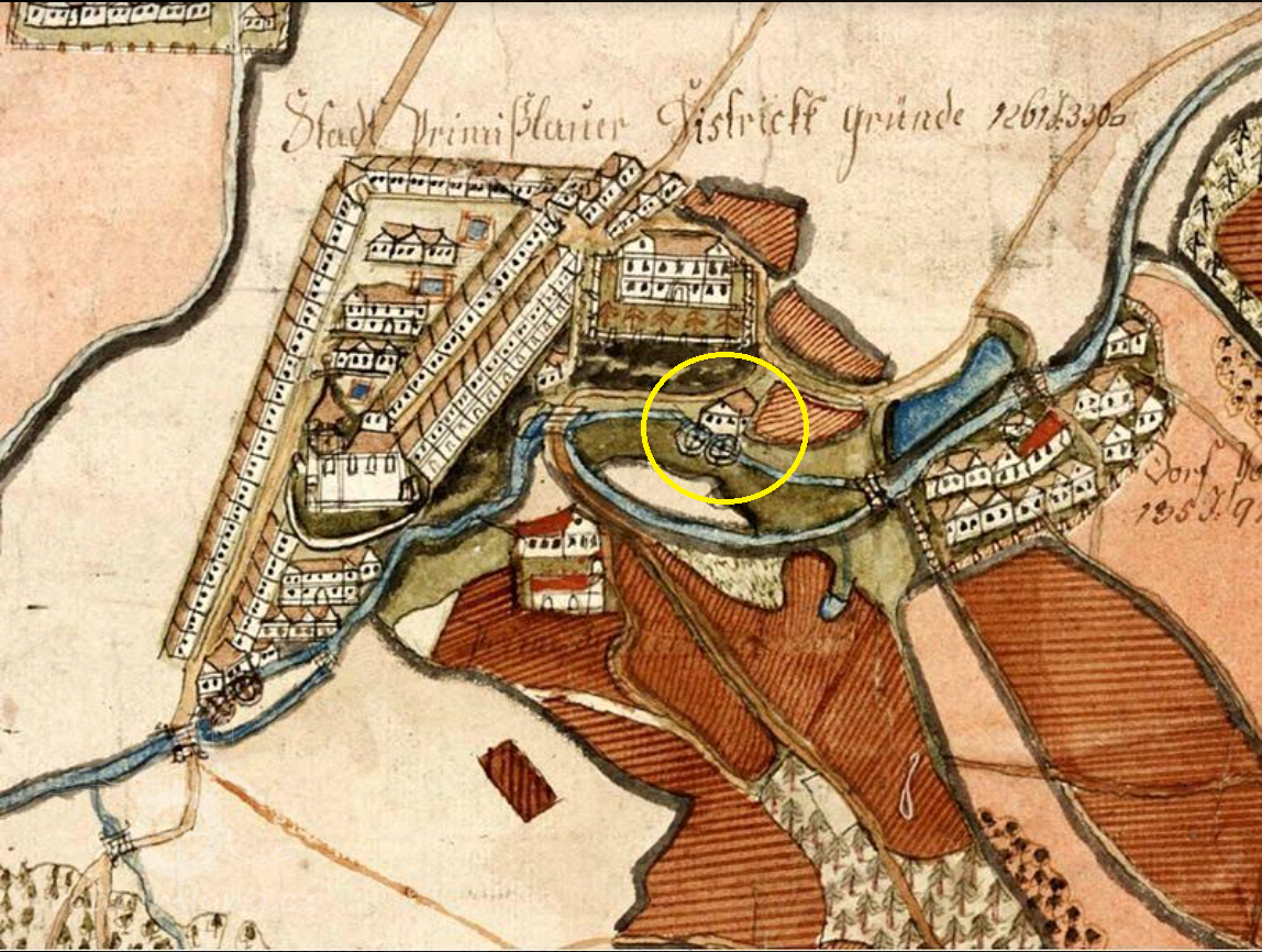 17. stol. o dvou složeních, nájemce platí 58 zl. 20 kr. ve dvou termínech, namísto vykrmení 3 vepřů platí 17 zl. 30 kr., k mlýnu náleží 4 míry pole a kus louky